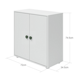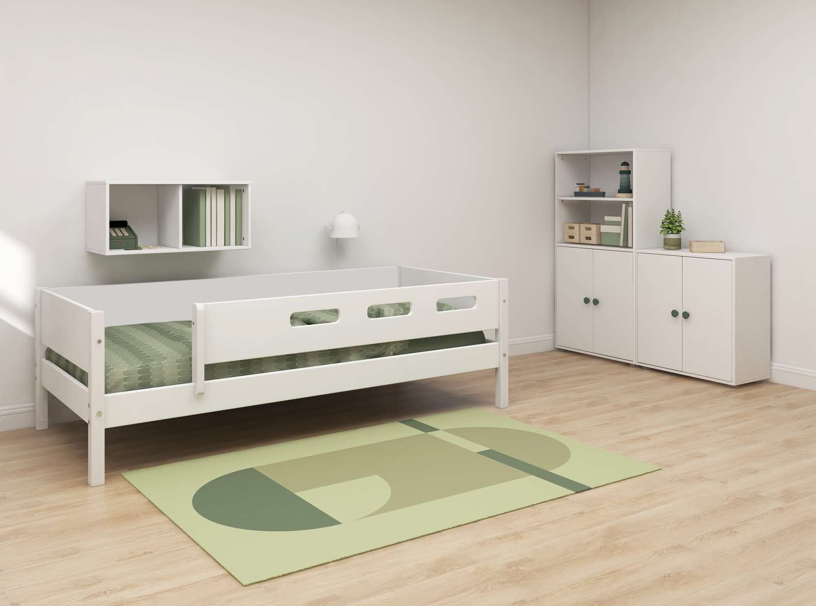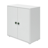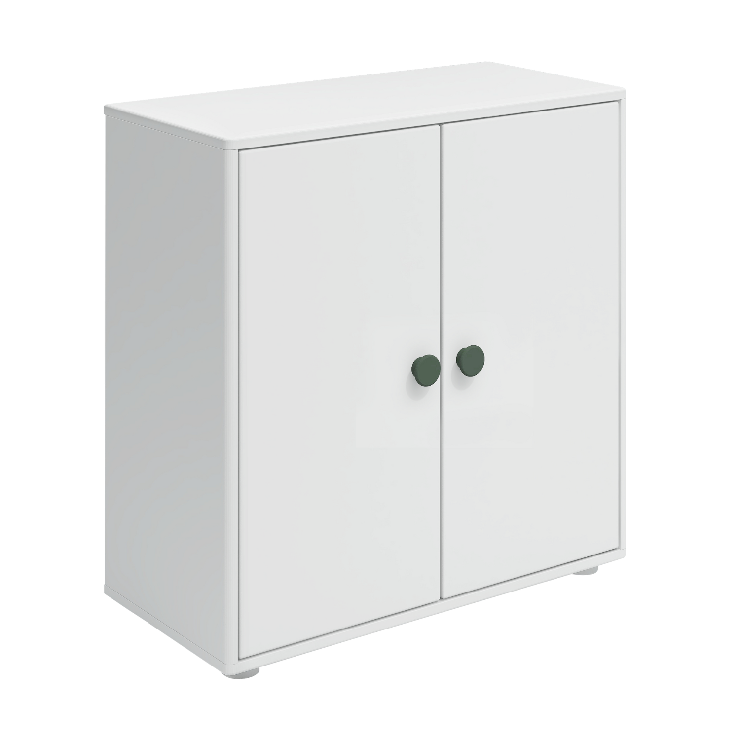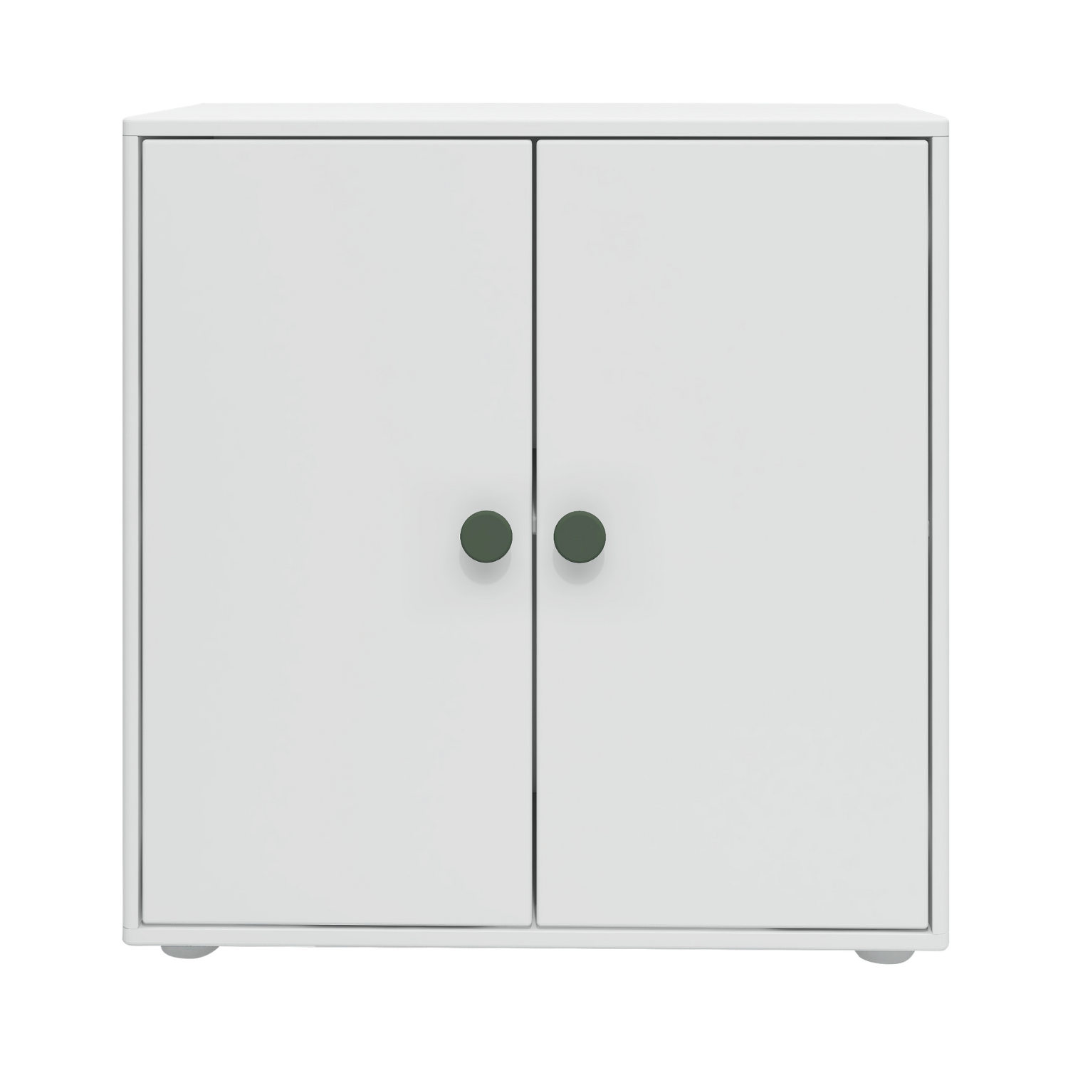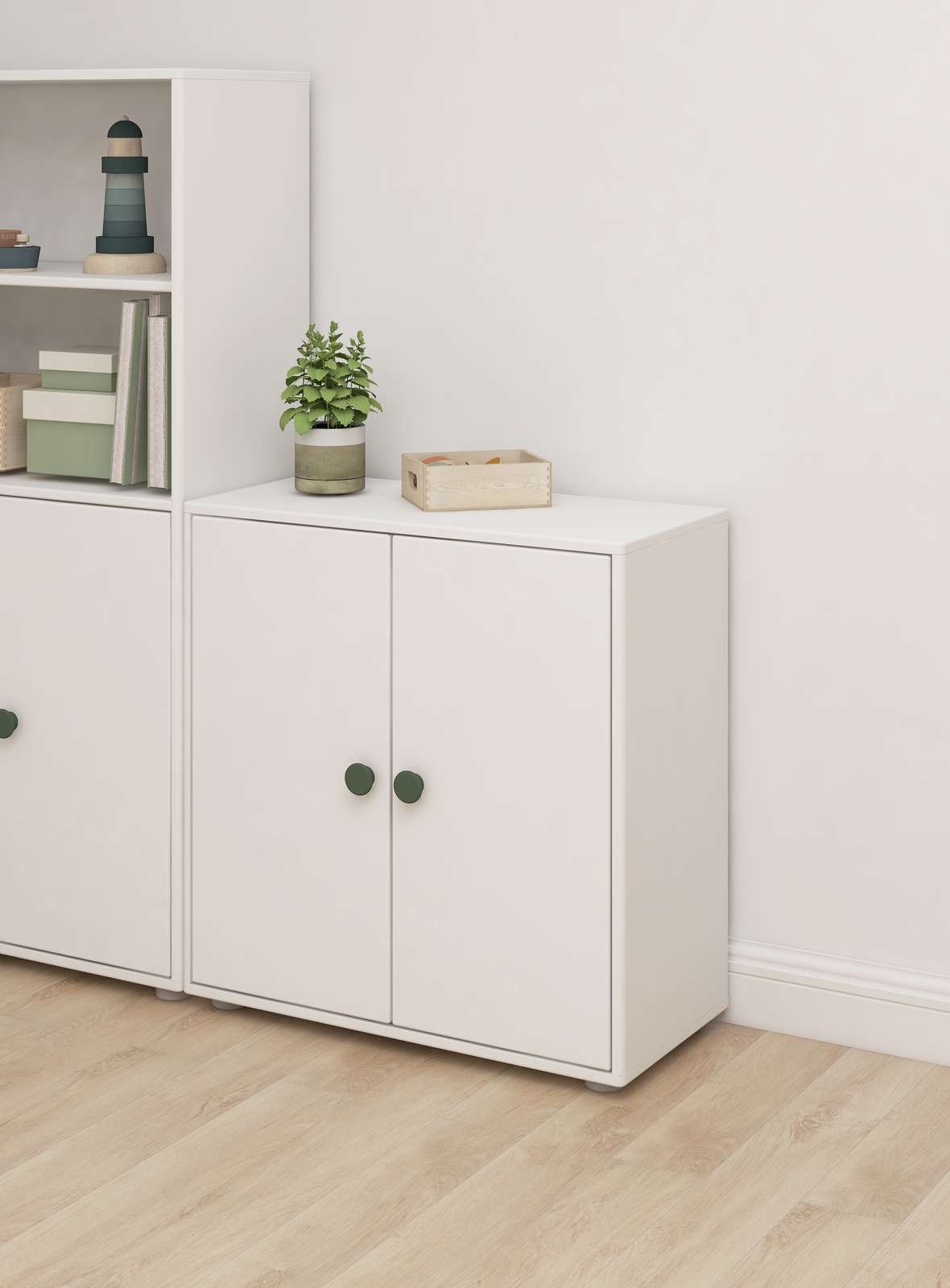 The freestanding Roomie mini bookcase has one adjustable shelf and two doors, and it's made of certified MDF and HDF. The bookcase is timeless, Scandinavian design with smooth edges for extra comfort and safety. It comes with rounded wooden knobs in several different colour options, and it's perfect for storing books, toys and games in your child's room. It fits under FLEXA mid-high beds, and it can easily be combined with other storage units. Check out the full Roomie collection to see all the storage possibilities. - Freestanding bookcase with one adjustable shelf and two doors - Full-coloured, smooth edges, and soft-close - Easy to match with other FLEXA collections - Made from FSC™ certified MDF and HDF - Designed in Denmark