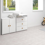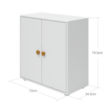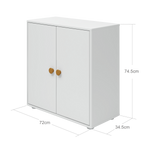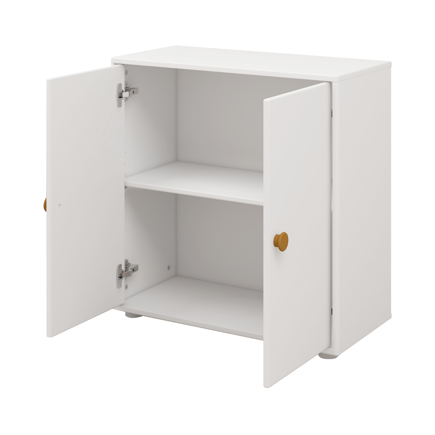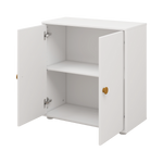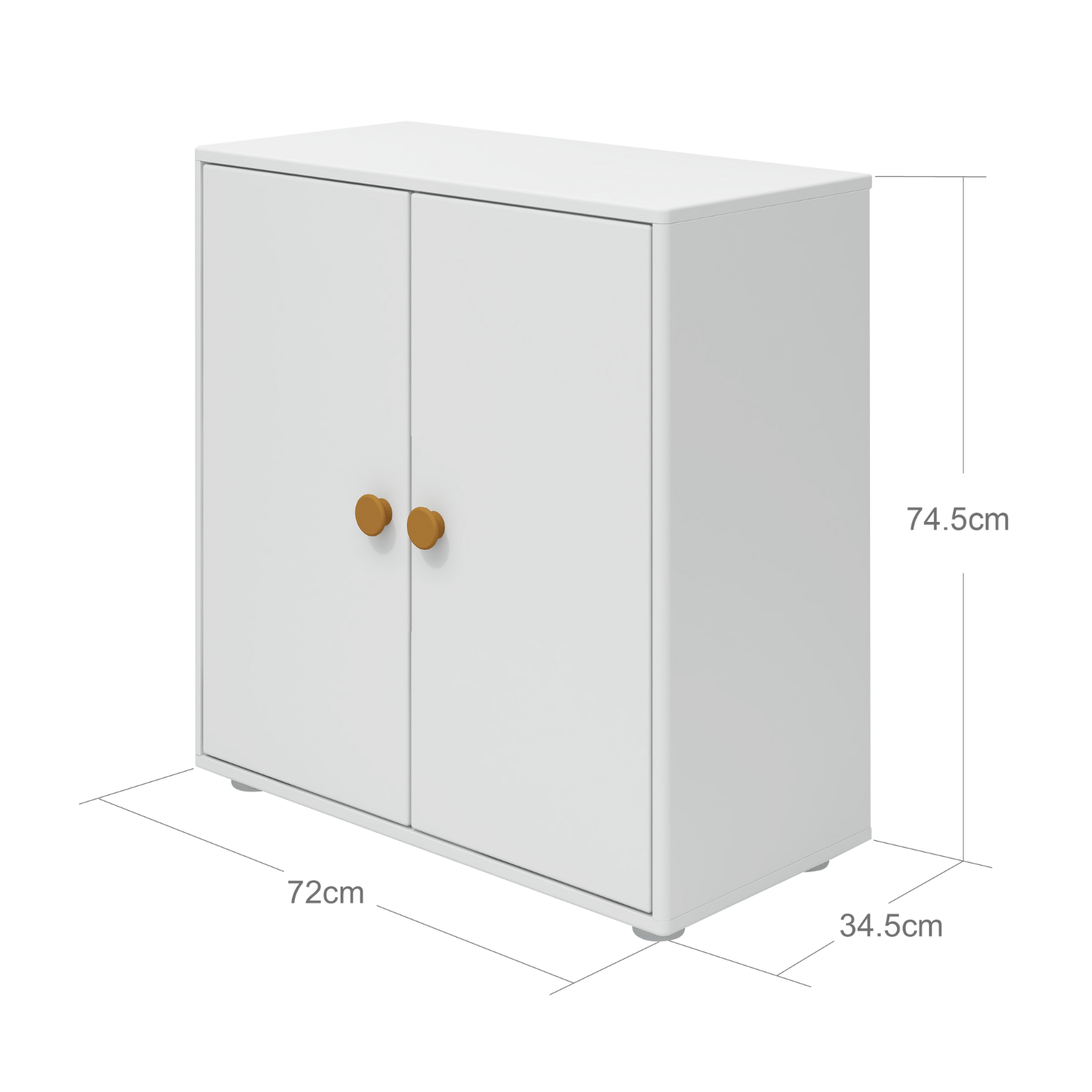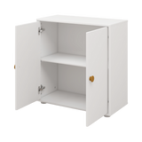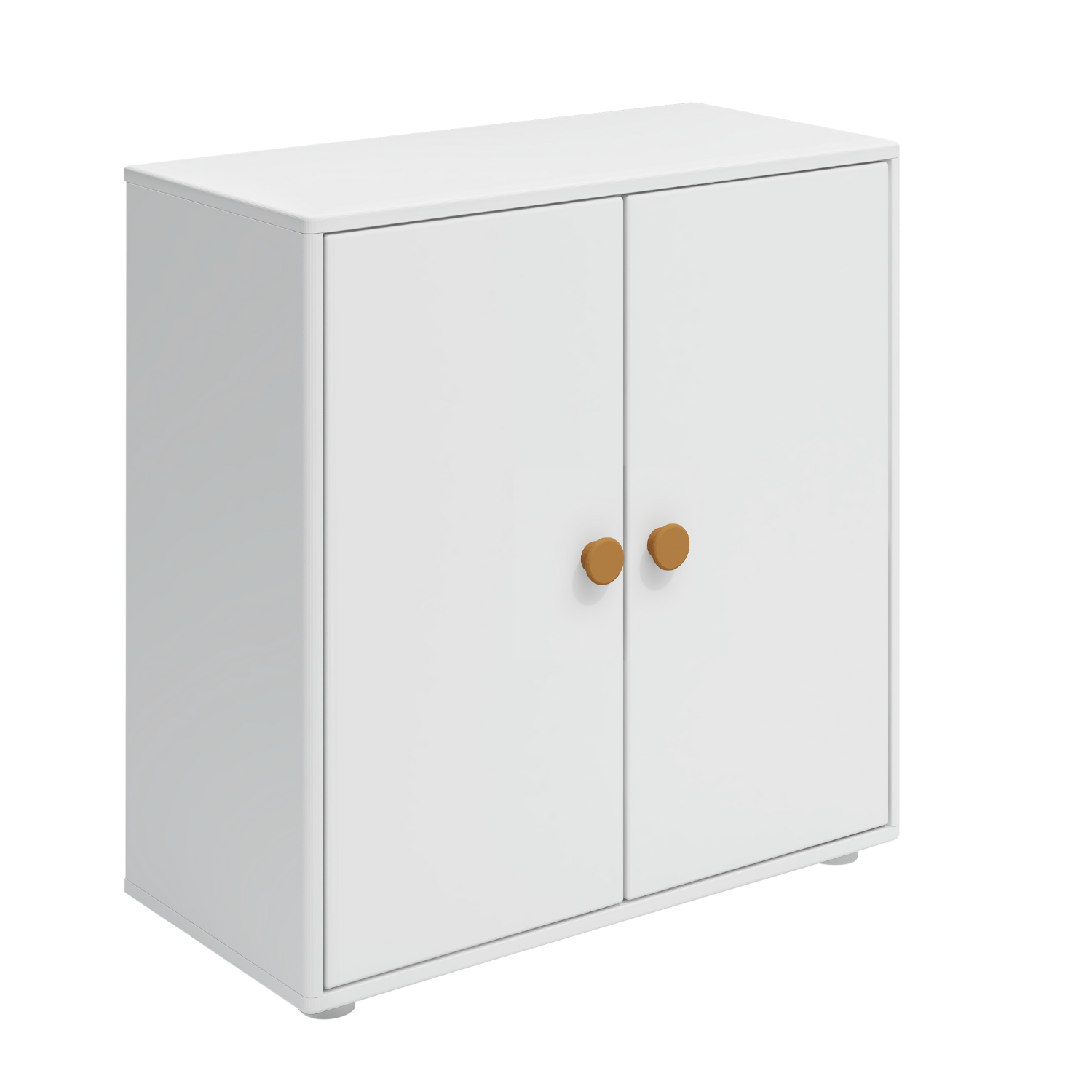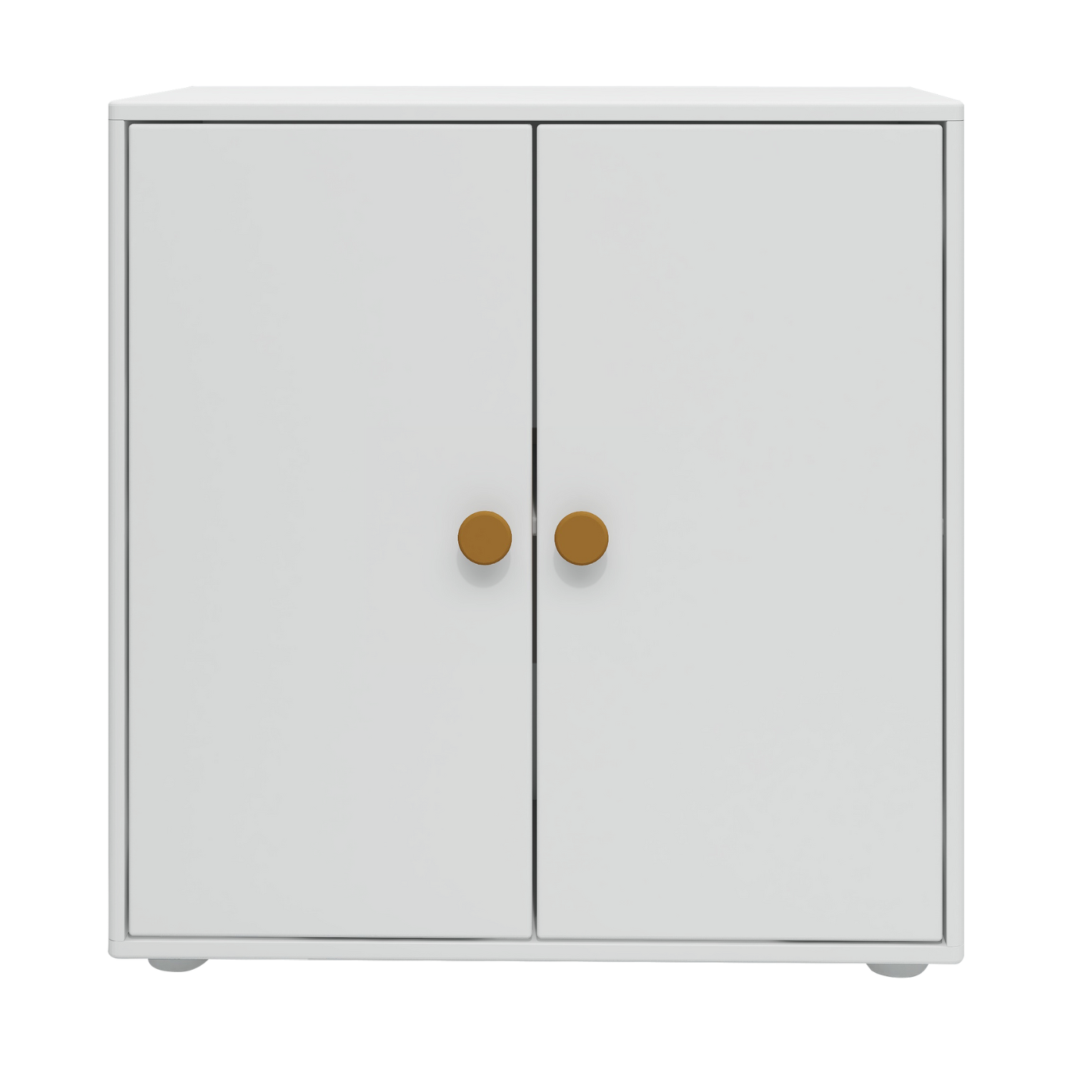 The freestanding Roomie mini bookcase has one adjustable shelf and two doors, and it's made of certified MDF and HDF. The bookcase is timeless, Scandinavian design with smooth edges for extra comfort and safety. It comes with rounded wooden knobs in several different colour options, and it's perfect for storing books, toys and games in your child's room. It fits under FLEXA mid-high beds, and it can easily be combined with other storage units. Check out the full Roomie collection to see all the storage possibilities. - Freestanding bookcase with one adjustable shelf and two doors - Full-coloured, smooth edges, and soft-close - Easy to match with other FLEXA collections - Made from FSC™ certified MDF and HDF - Designed in Denmark