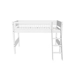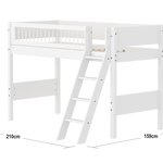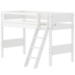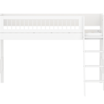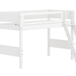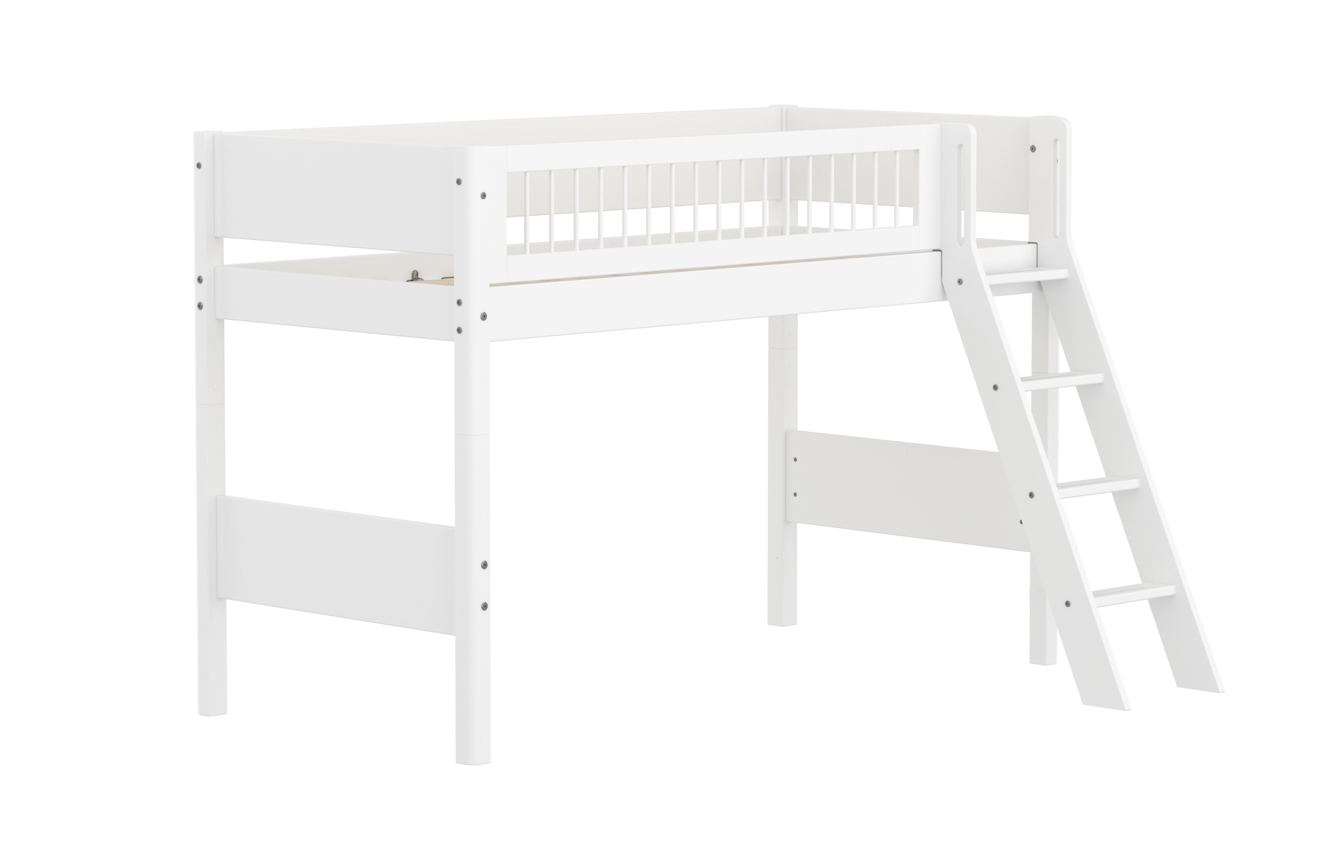 WHITE semi-high bed with stanting ladder for the older child. The ladder has anti-slip steps and integrated handles and can be placed in both ends of the bed.