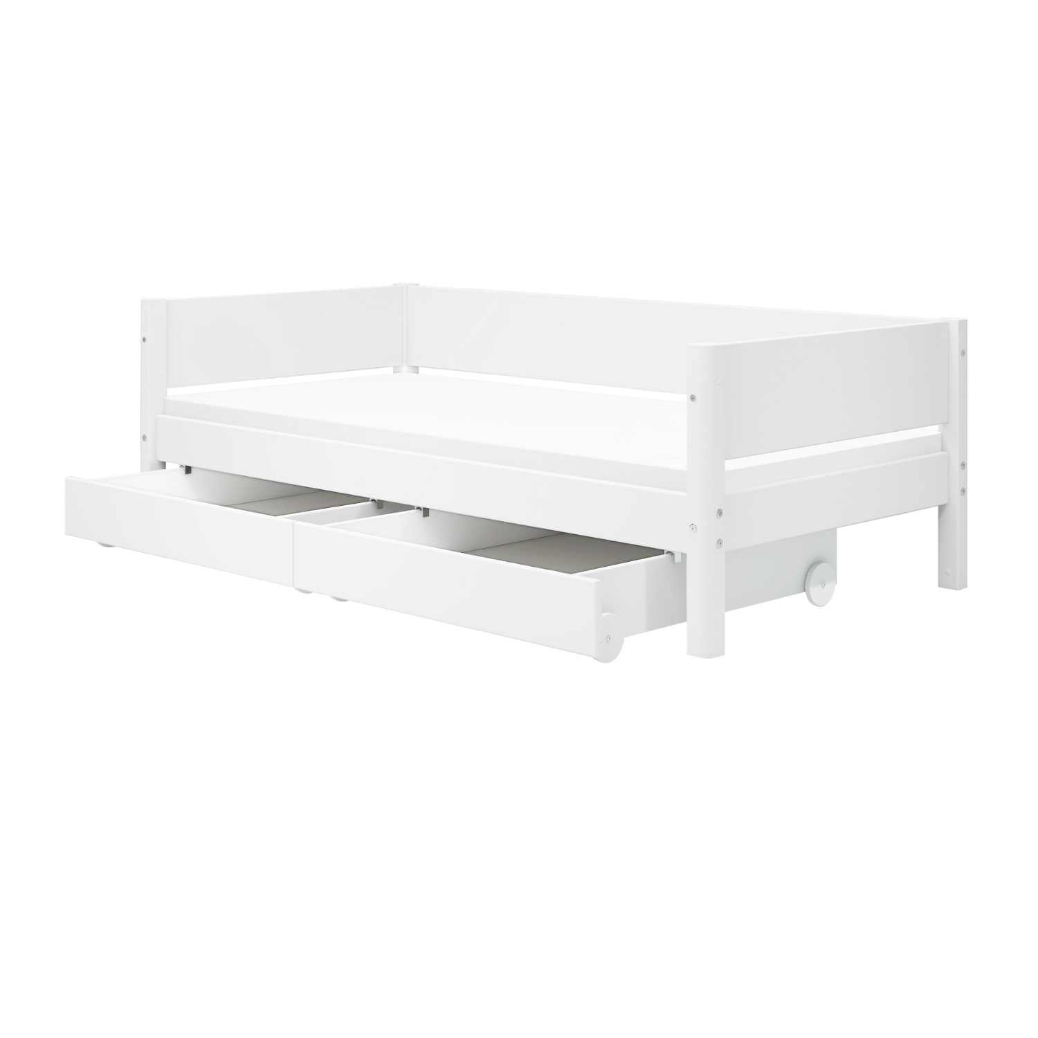 FLEXA's lineup of single beds for kids is a perfect blend of safety and style. Safety features include safety-rails for the littlest snoozers that offer secure and comfortable sleep spaces. Some models come with a pull-out bed for unplanned sleepovers and you can also add underbed drawers for easy storage options. Take it to the next level with our house beds that transform your child’s room into a magical space. The perfect children’s bed that is made for creating special moments.
