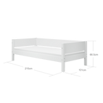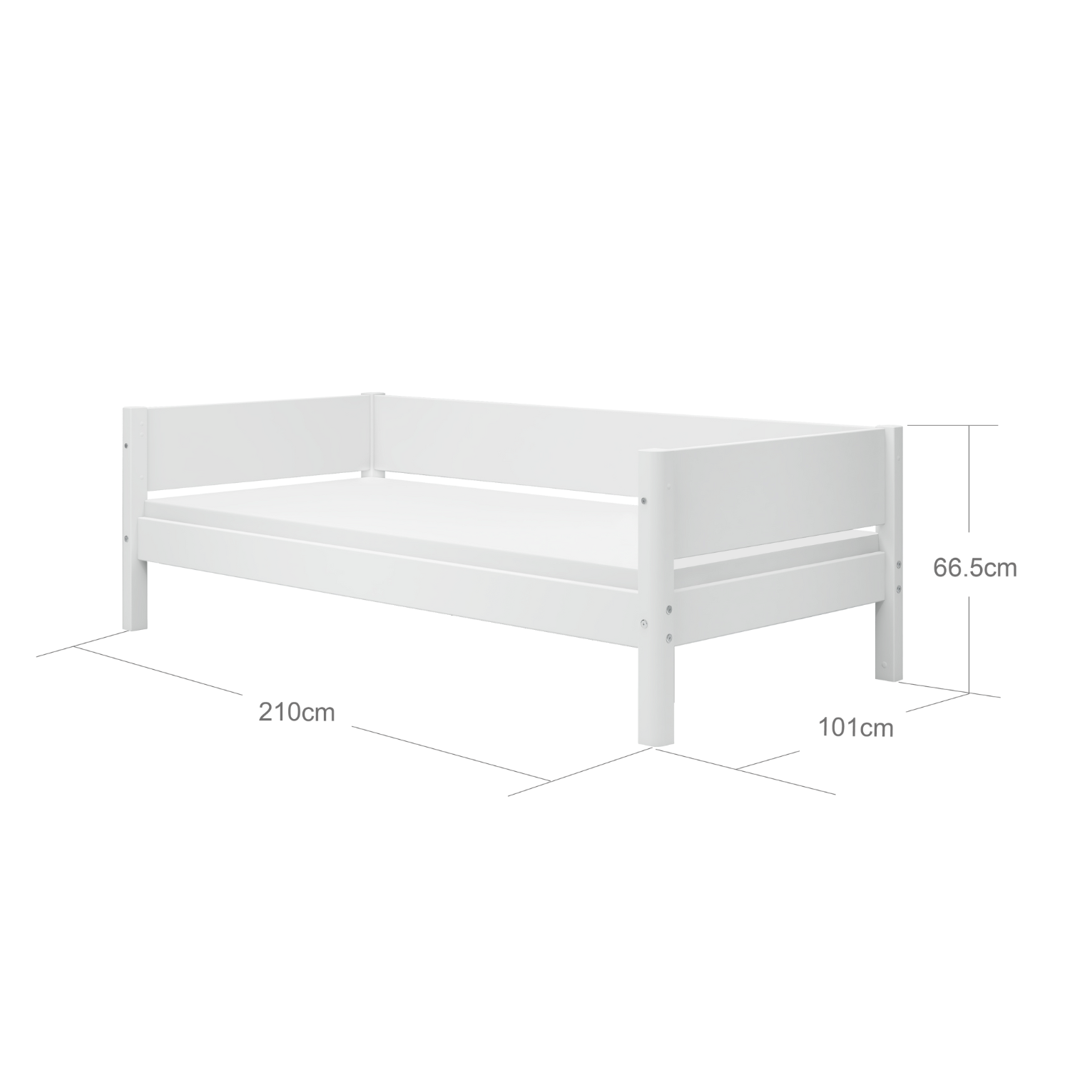 Vores White enkeltseng er designet til at give børn et sted, hvor de kan føle sig trygge til at tage på eventyr, både i deres drømme og i dagtimerne. Den kan både bruges som seng om natten og som sofa om dagen.