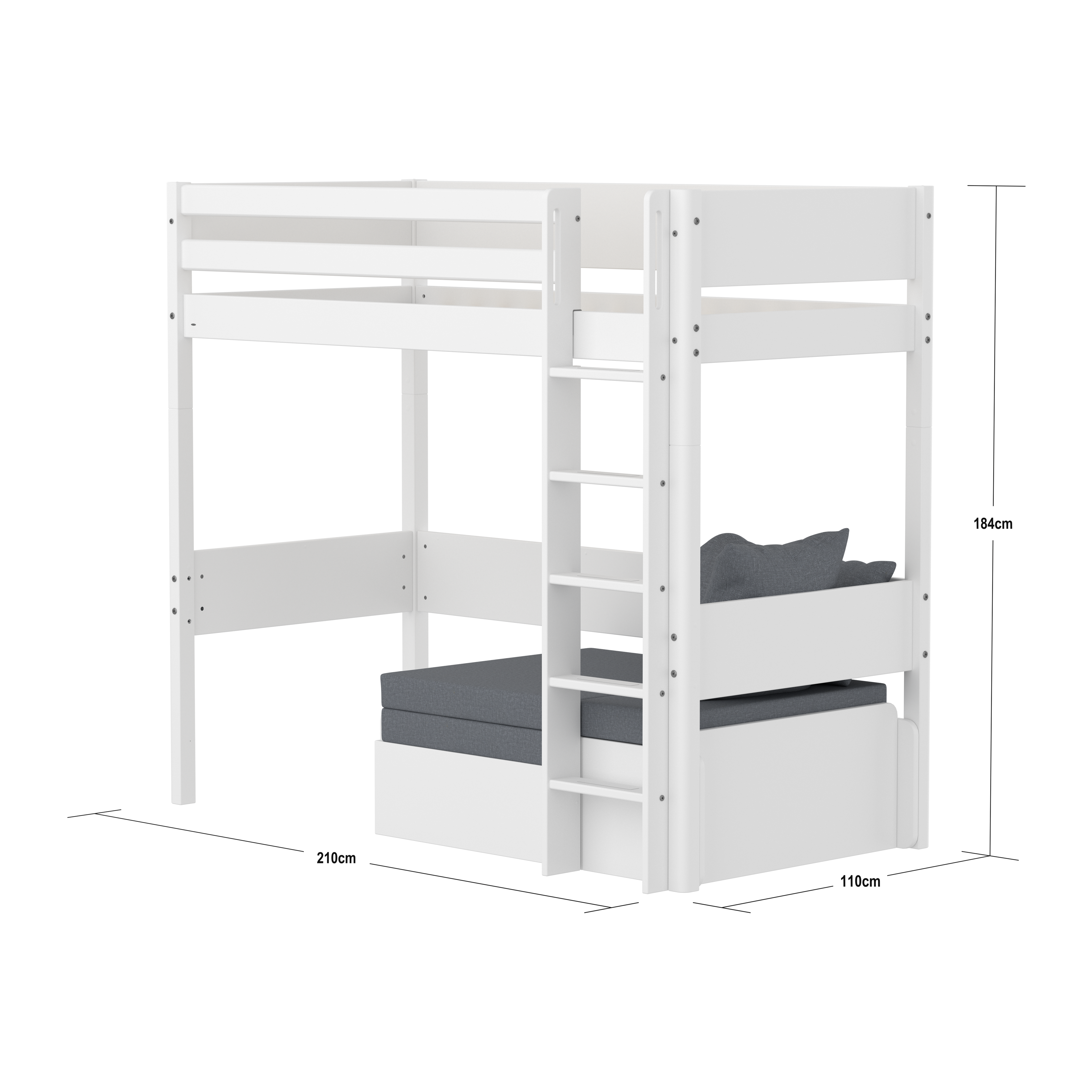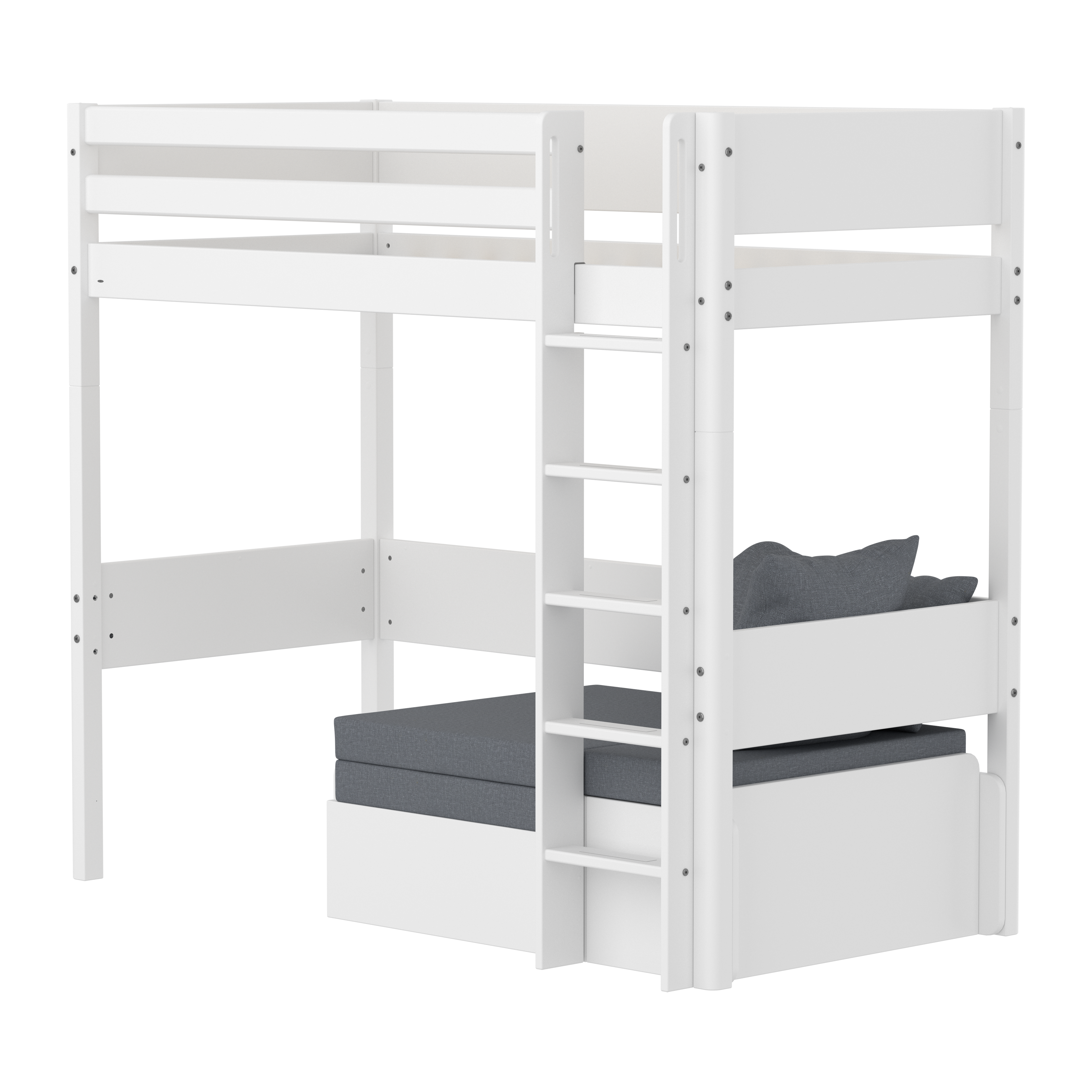 Få mest muligt ud af dit barns værelse med denne multifunktionelle LIMITED EDITION FLEXA højseng – komplet med det hyggelige CASA sofa modul og matchende madras. Alt i en flot hvid finish og med klogt dansk design i fokus.