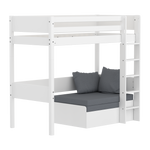 Høj seng med sofa, skrivebord og madras, 90x200 cm