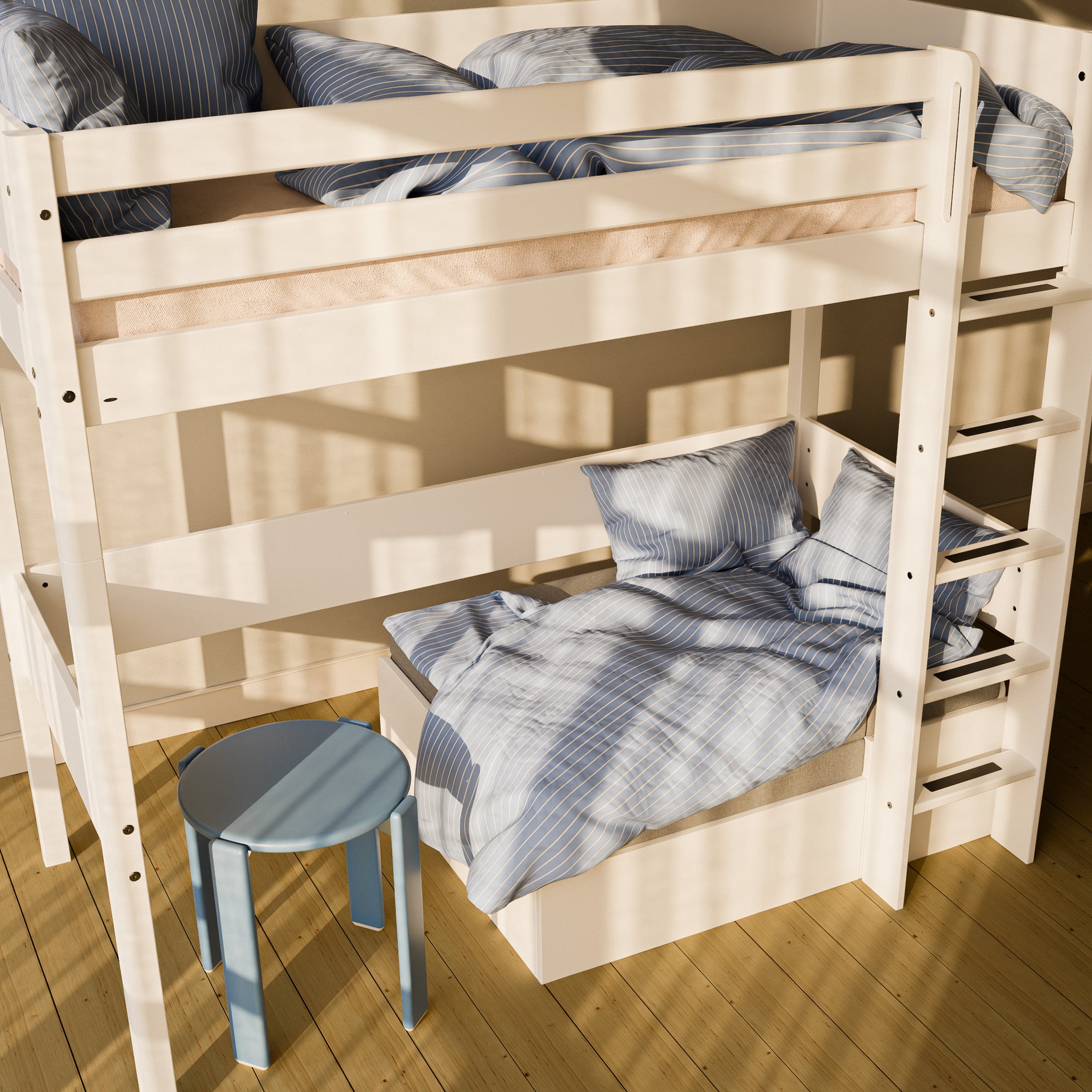 • Plads under sengen til leg eller opbevaring – eller tilføj et skrivebord senere, hvis der er behov for studieplads