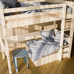 Denne eksklusive konfiguration findes kun i et begrænset antal og bliver ikke genopfyldt. Når den er væk, er den væk! Giv dit barn en seng, der inspirerer fantasien, støtter daglige rutiner og sparer plads.
