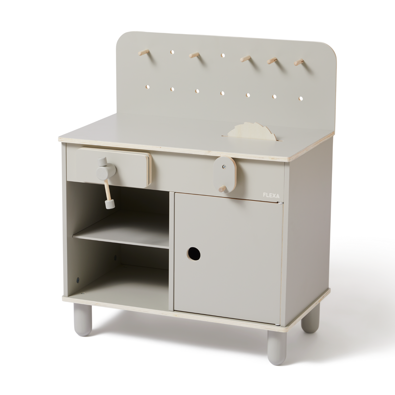 Børn lægger mærke til alt, hvad der sker omkring dem. De er fascinerede af, hvad deres forældre og søskende gør og hurtige til at imitere dem. Igennem rolleleg udvikler dit barn vigtige kompetencer, såsom empati og verbal og nonverbal kommunikation. Legetøj til børns forestillingsleg er perfekt til klassiske rollelege, som ”far, mor og børn”, eller måske vil dit barn prøve rollen som kok, butiksindehaver eller håndværker?