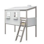 Højseng 120 cm med hus, stige og sengehest, 90x200 cm, Hvid