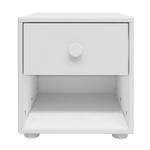 Den fritstående Roomie-kommode har én skuffe med rundt trægreb, som kan fås i flere forskellige farver. Kommoden er i et tidløst, skandinavisk design med afrundede kanter og skuffer med soft-close, der sikrer, at små fingre ikke kommer i klemme, når skuffen åbnes og lukkes.