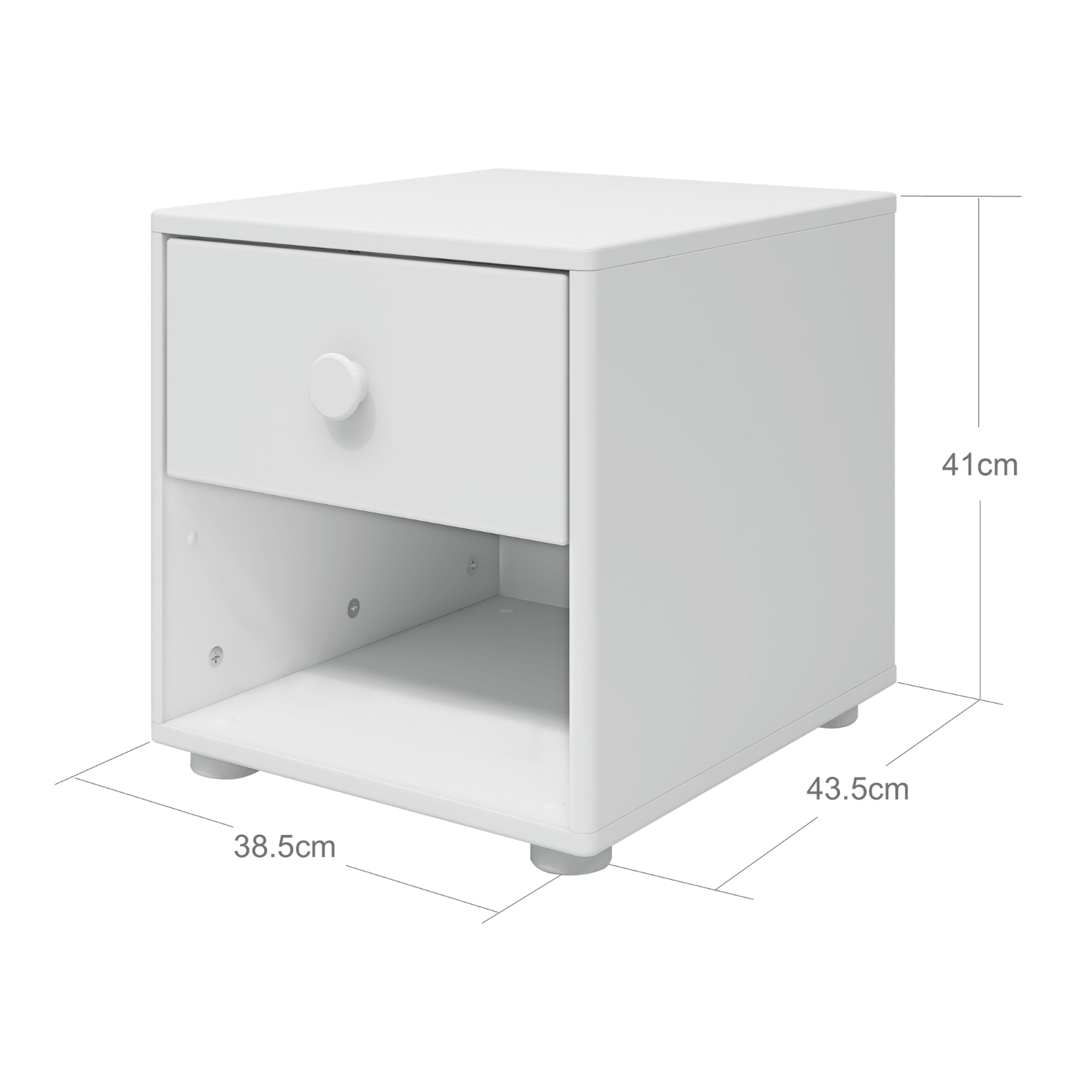 Kommoden er perfekt som sengebord eller til opbevaring af skoleting, og den kan nemt kombineres med andre opbevaringsmoduler. Den er fremstillet af certificeret MDF og HDF og har justerbare fødder.