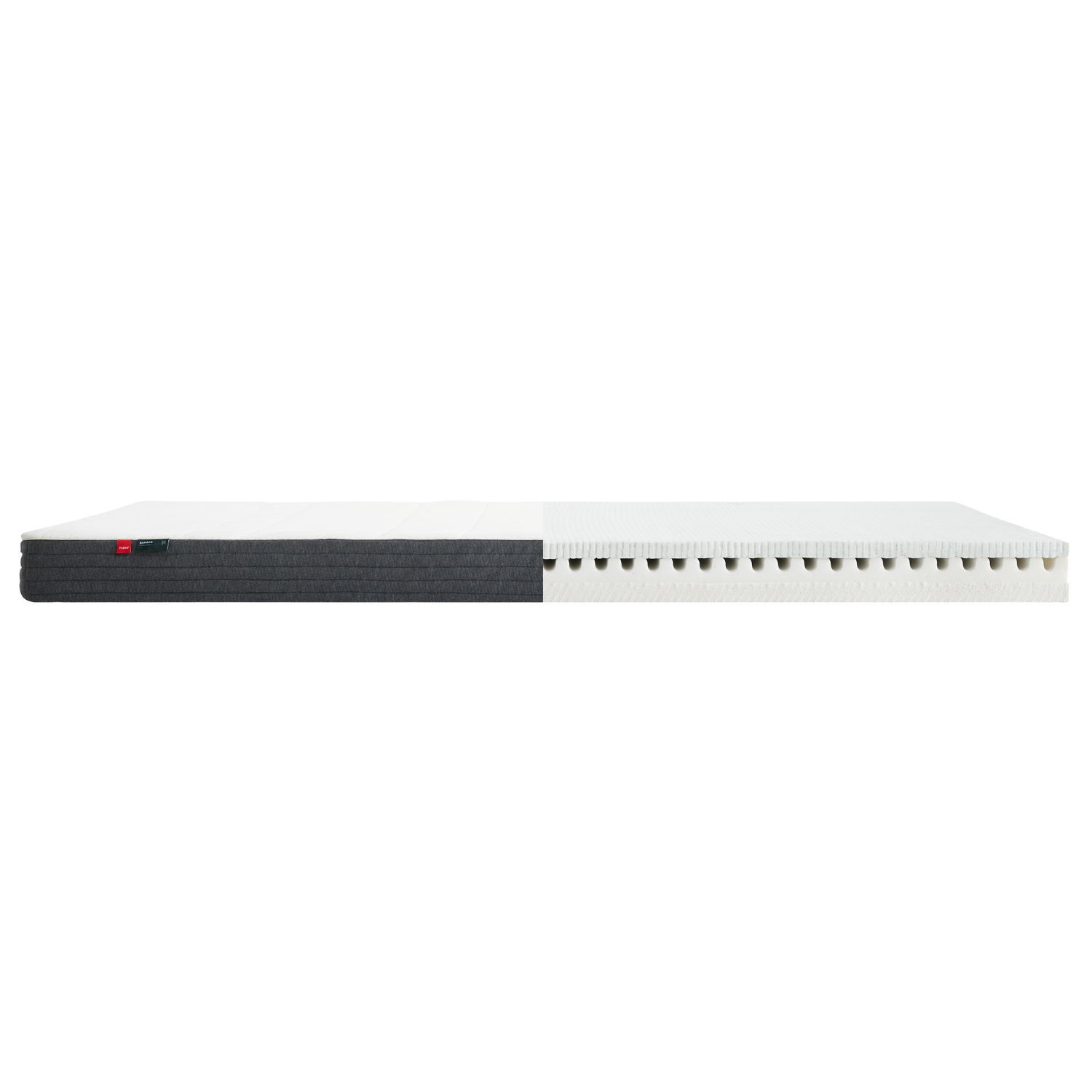 3 cm latex med kølig gel på den ene side, 5 cm koldskum i midten og 4 cm latex på den anden side. Latex med luftkanaler giver god ventilation og transporterer fugt væk fra kroppen.