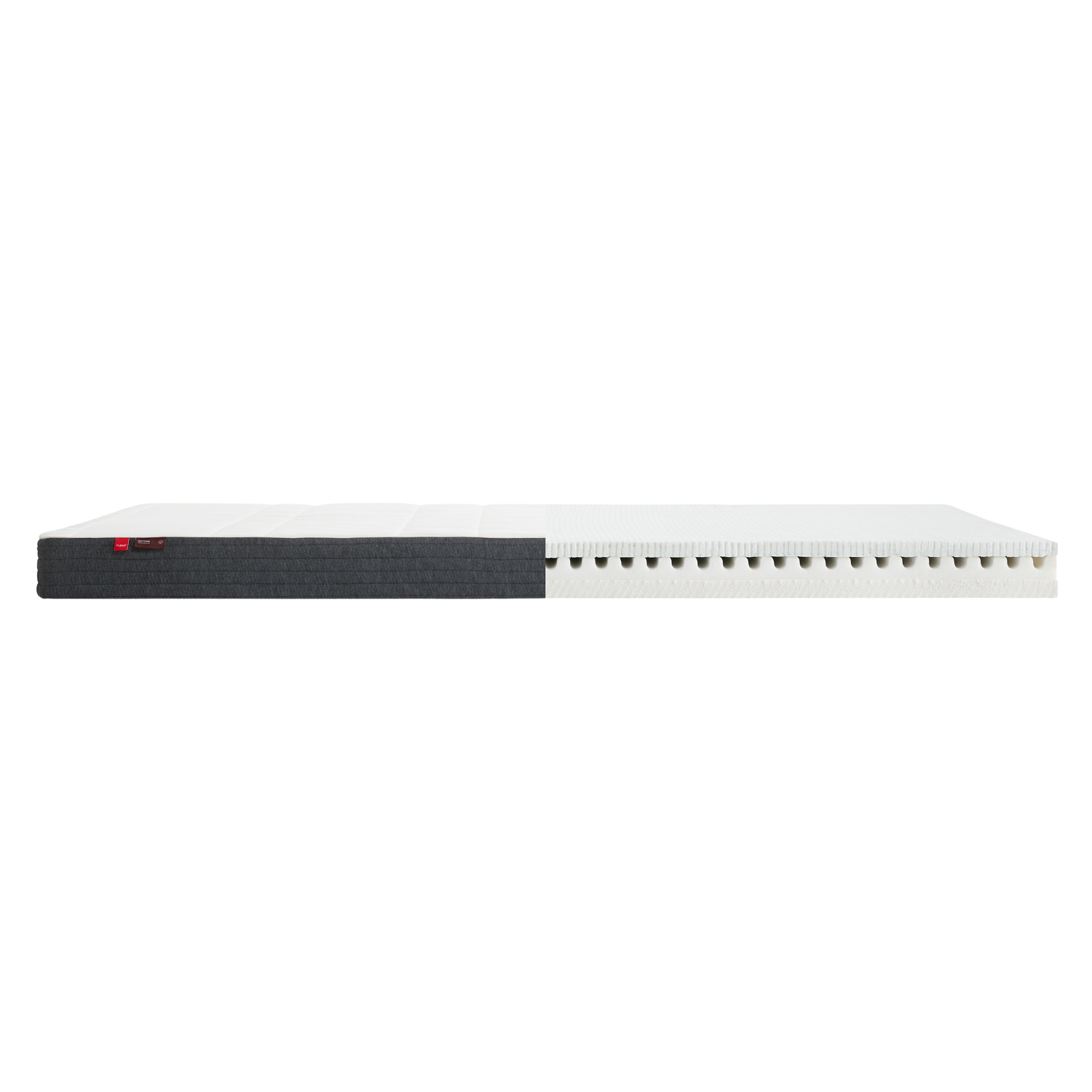 FLEXA Madrassen har 3 cm latex med kølig gel på den ene side, 5 cm koldskum i midten og 4 cm latex på den anden side. Latex med luftkanaler giver god ventilation og transporterer fugt væk fra kroppen.