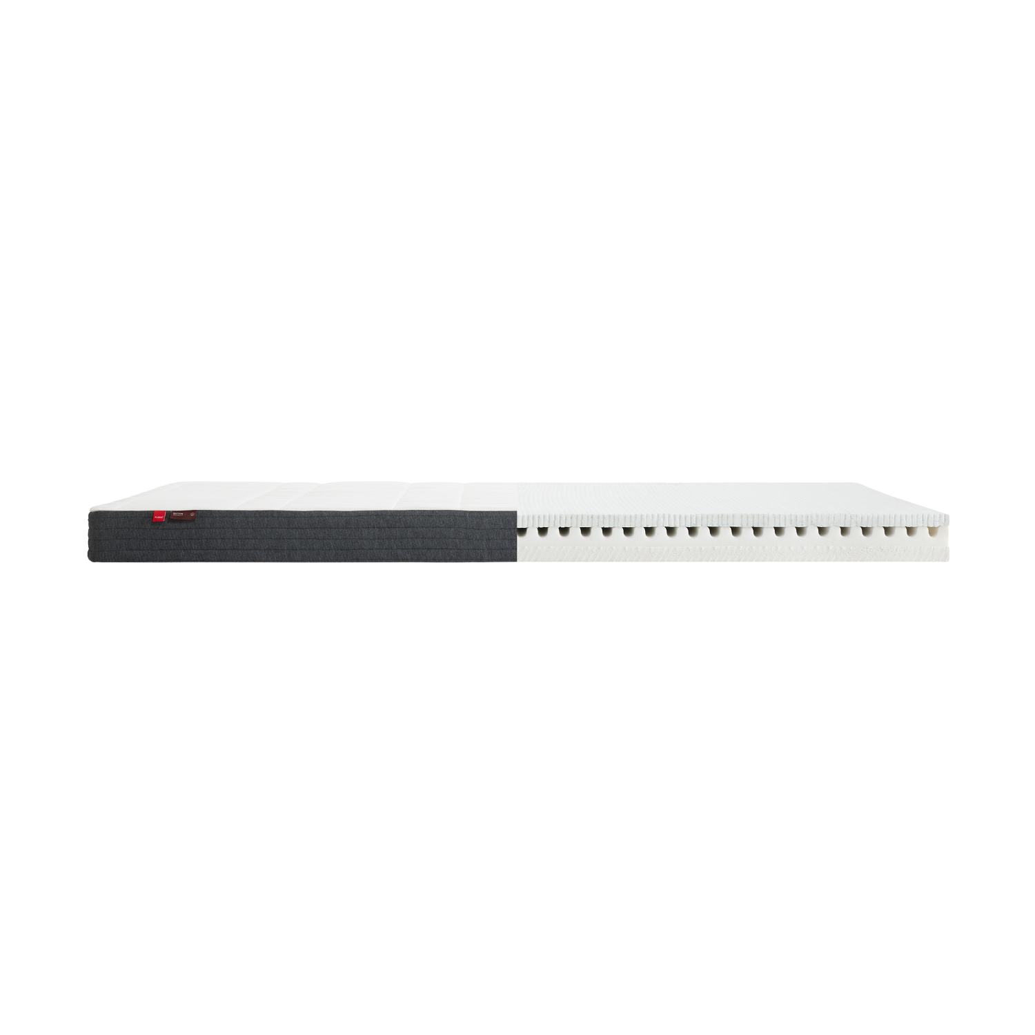 FLEXA Madrassen har 3 cm latex med kølig gel på den ene side, 5 cm koldskum i midten og 4 cm latex på den anden side. Latex med luftkanaler giver god ventilation og transporterer fugt væk fra kroppen.