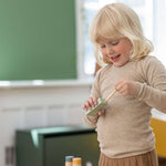 En sjov måde at lære dit barn om prisen på mad, grundlæggende talfærdighed og ordgenkendelse er ved at lade som om, I køber ind. Mens I samler jeres indkøb, kan du give dit barn ny viden om f.eks. madens oprindelse. Hvor kommer mælk fra?