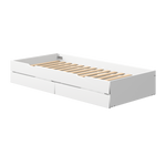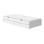 NOR Unterschiebebett mit 2 Schubladen. Das Unterschiebebett hat Rollen aus Weichgummi für Hartböden.