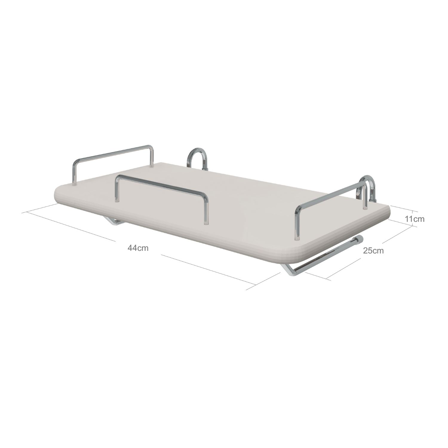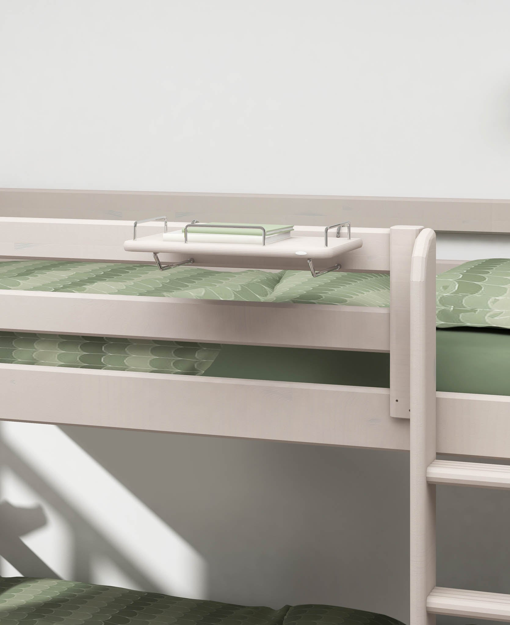 Bringen Sie das Regal an der Bettseite oder am Bettende an. Es ist ideal, um dort eine kleine Lampe aufzustellen oder ein Buch mit Gute-Nacht-Geschichten abzulegen.