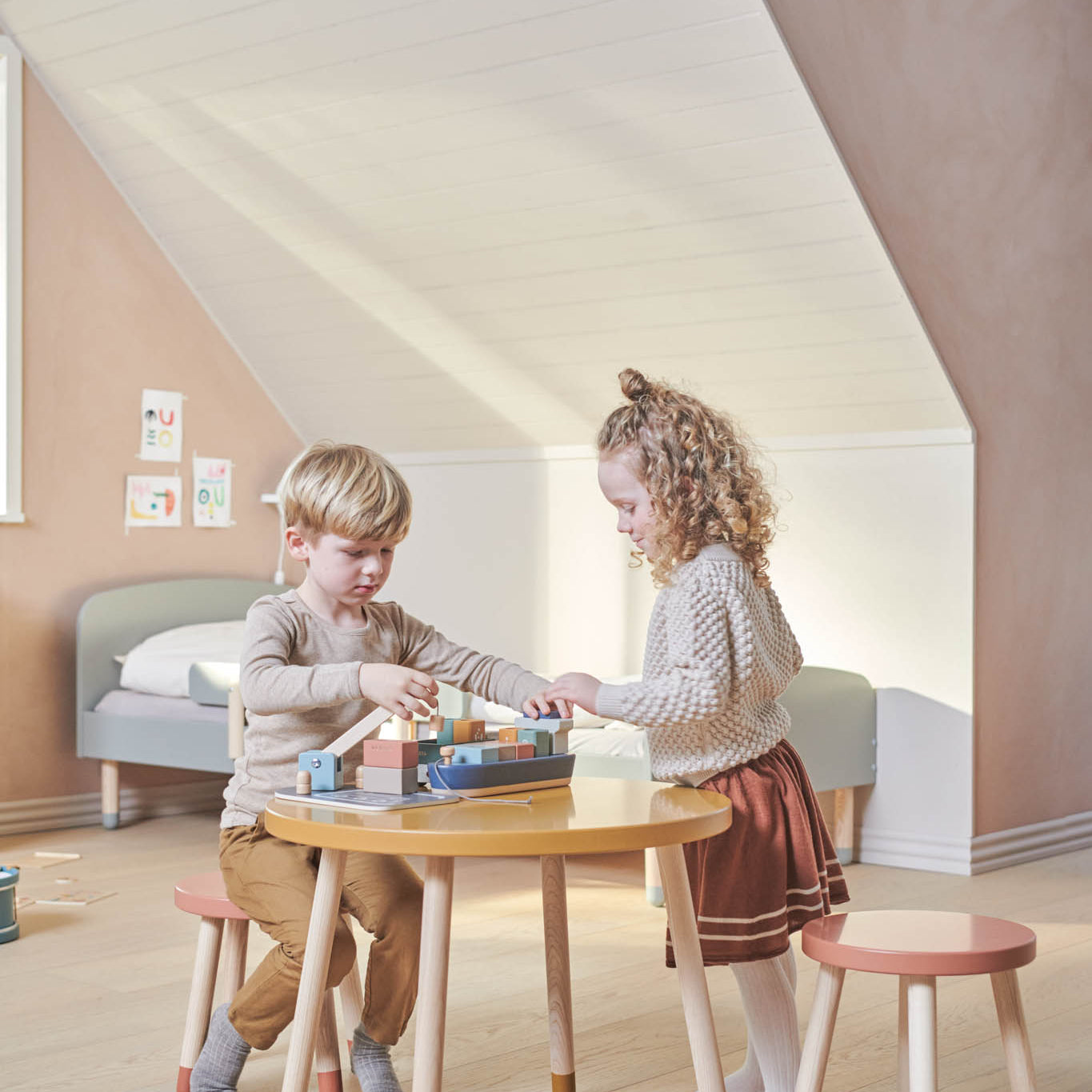 DOTS Kindertisch, Ø 60 cm, MDF/Esche Massiv, Cream