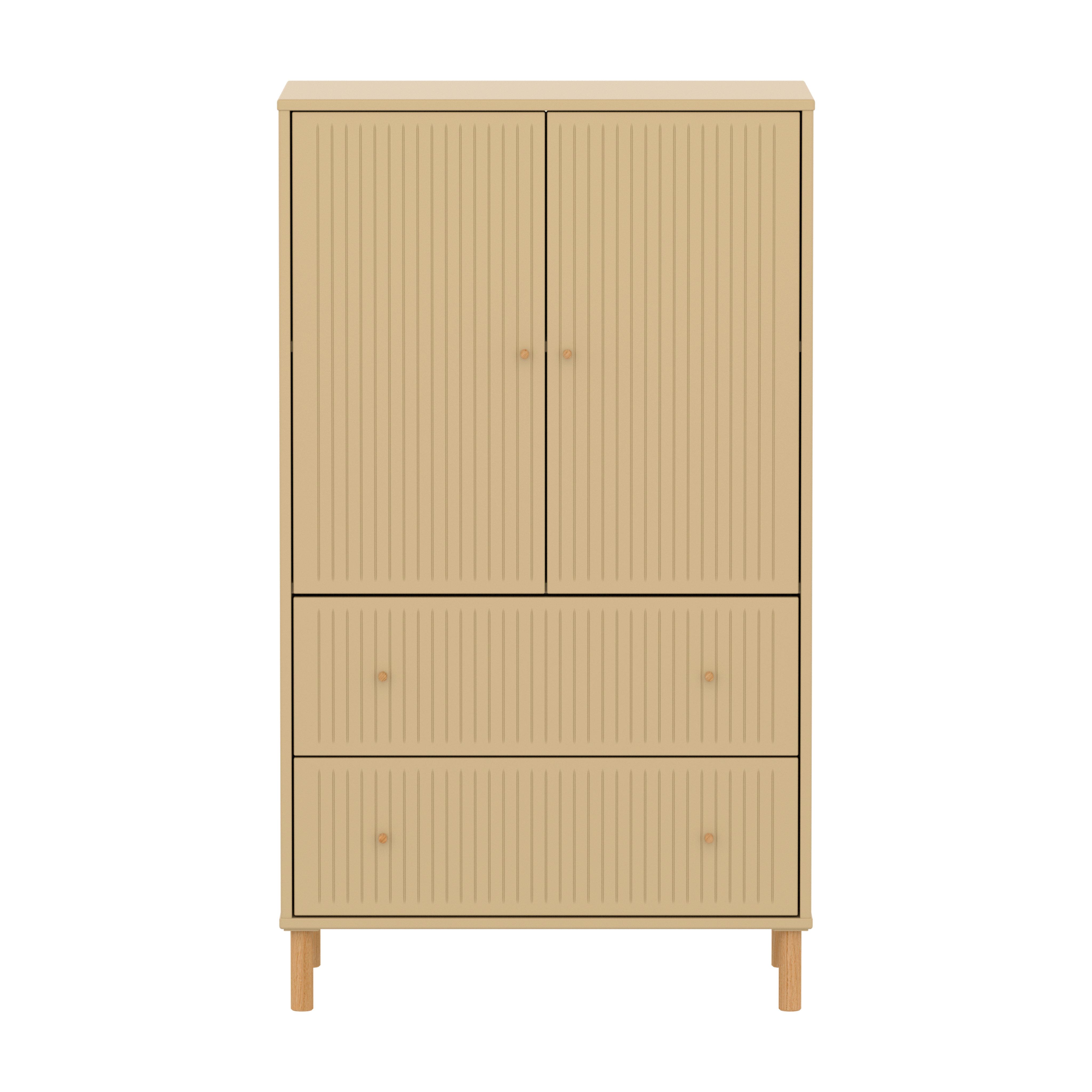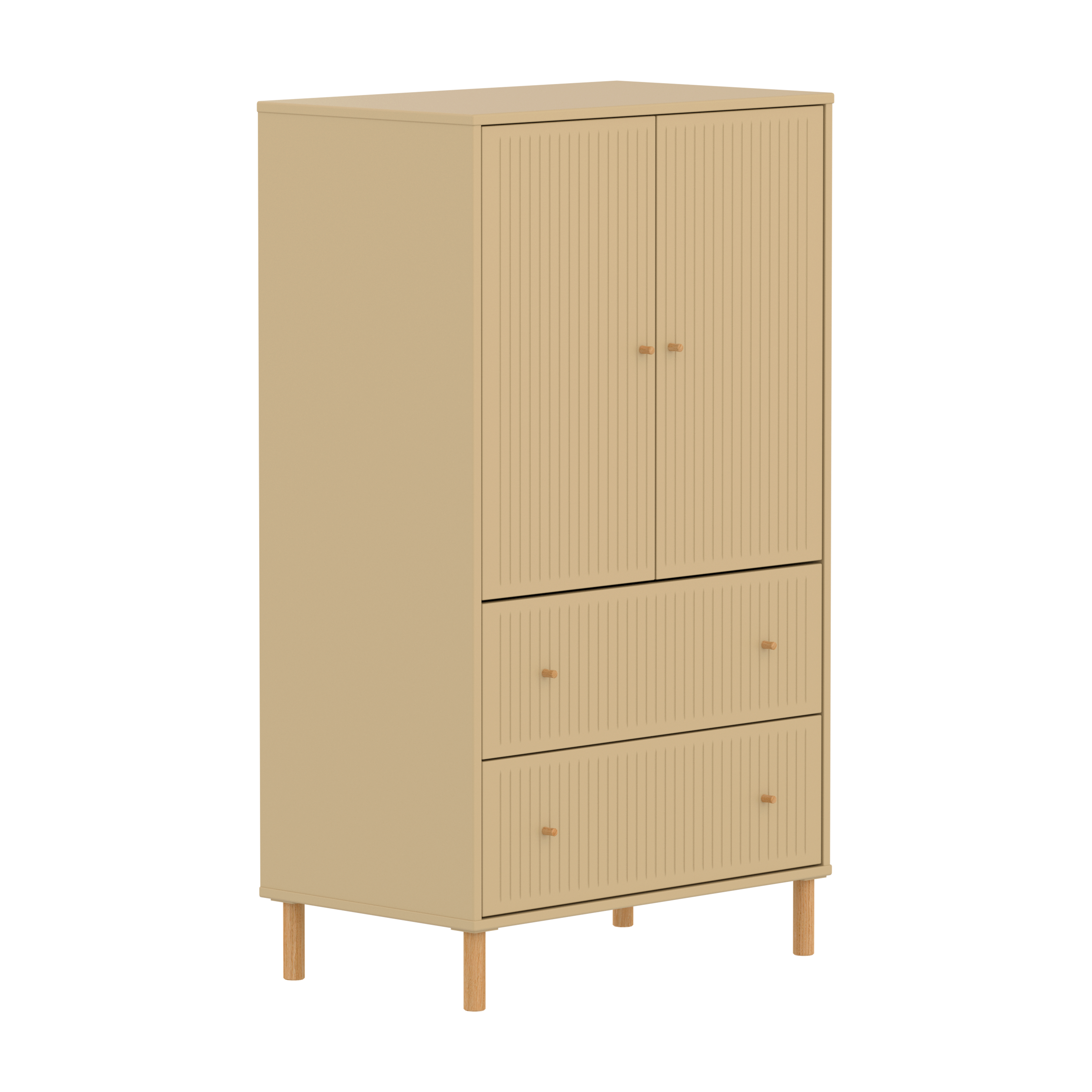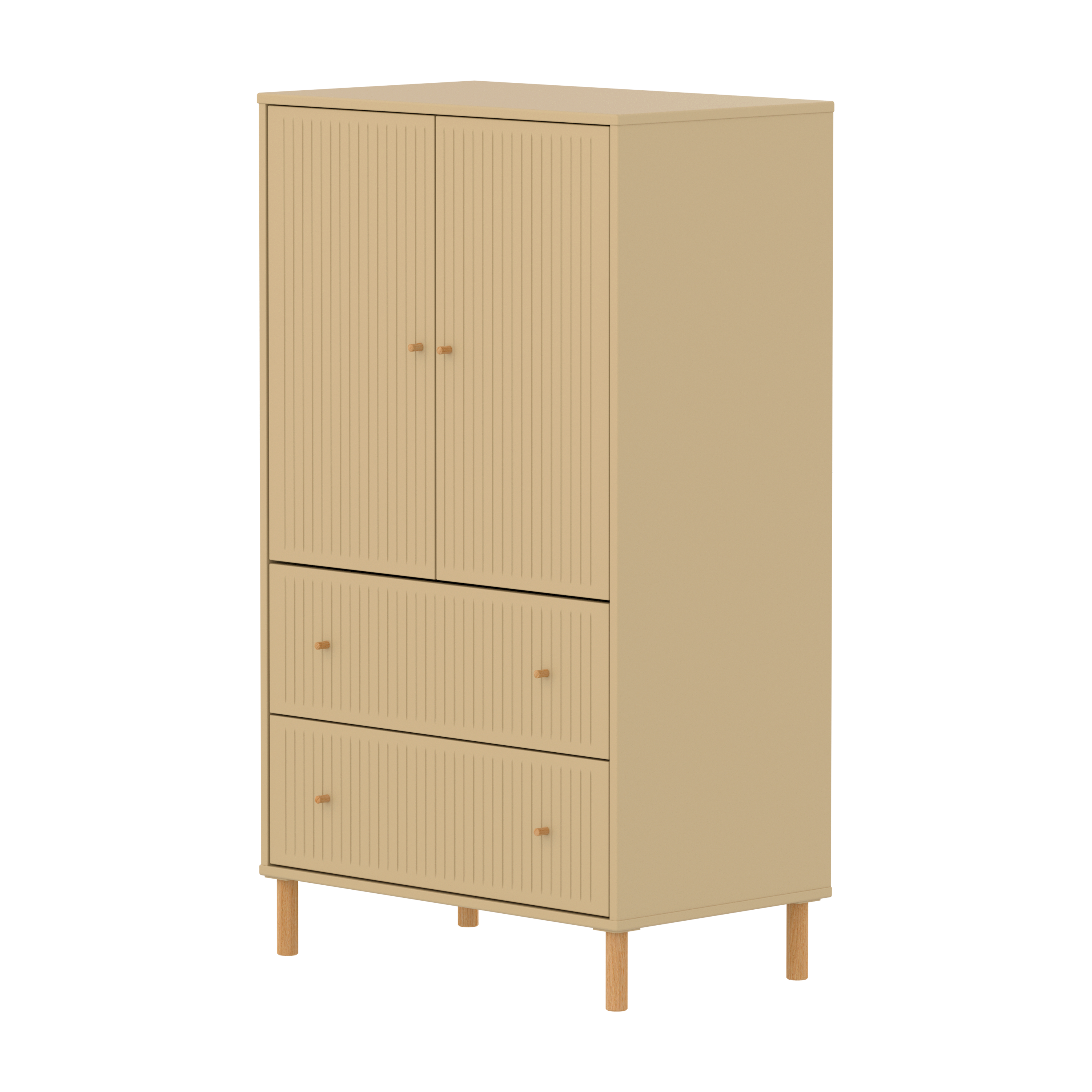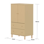 Der FLEXA SAGA Schrank verfügt über zwei Türen zwei Schubladen und einen verstellbaren Einlegeboden. Die Türen mit Soft Close Funktion und die Schubladen schützen kleine Finger und bieten eine elegante und leise Schließfunktion. Die runden Griffe in Eiche verleihen dem Schrank ein schlichtes und elegantes Design.