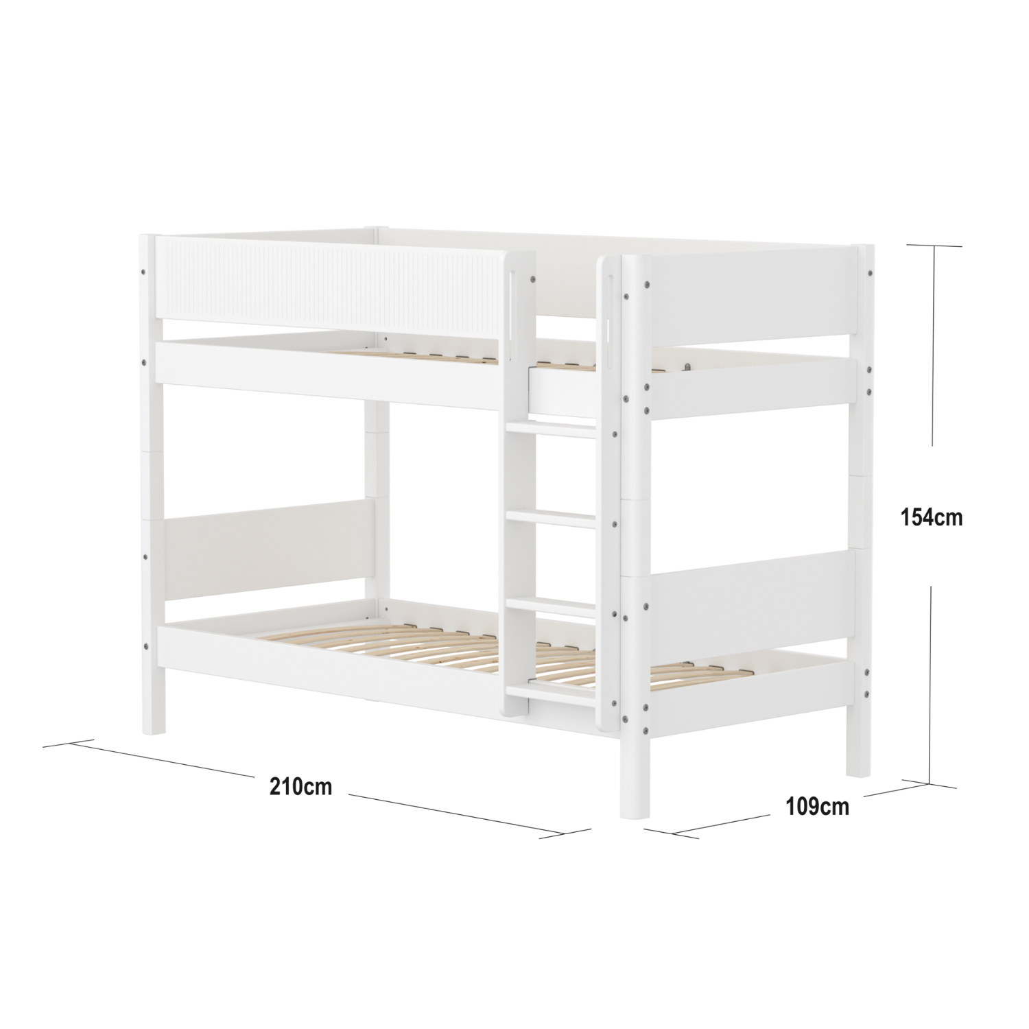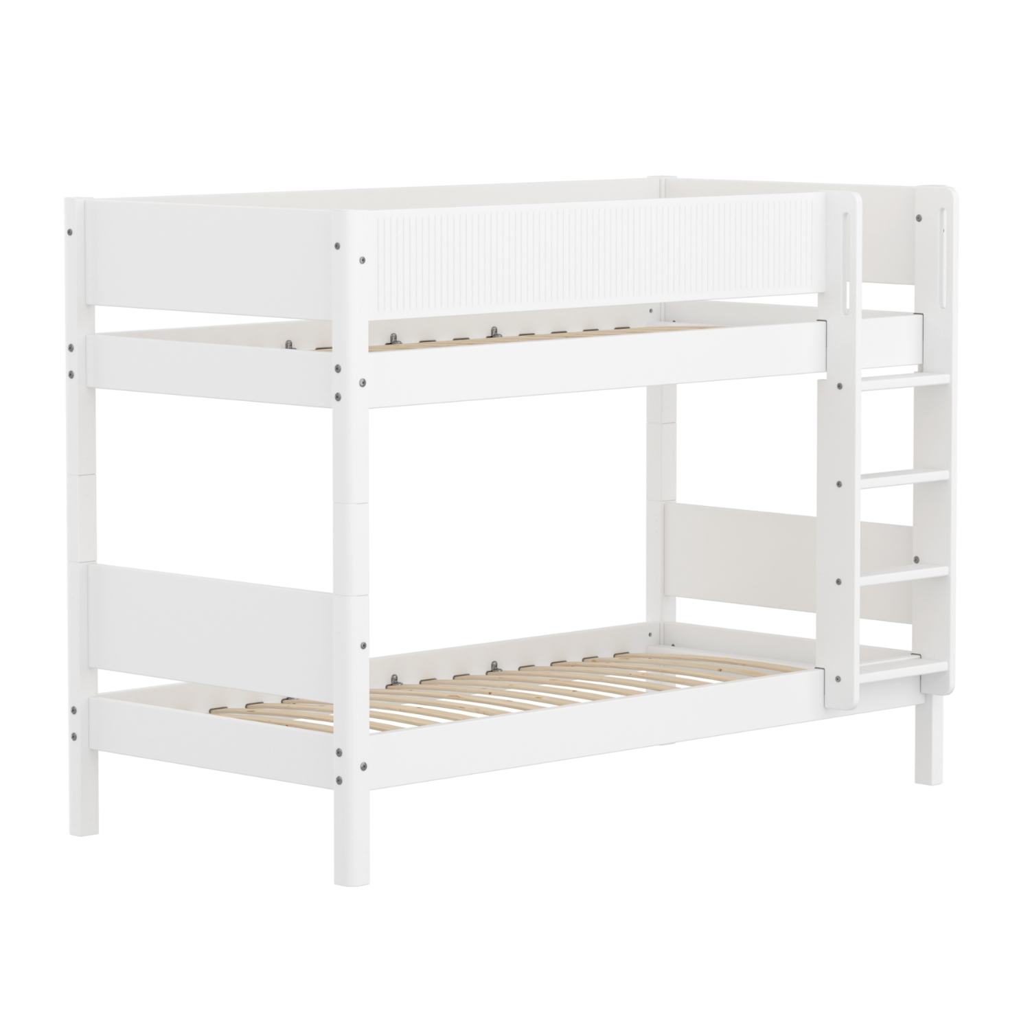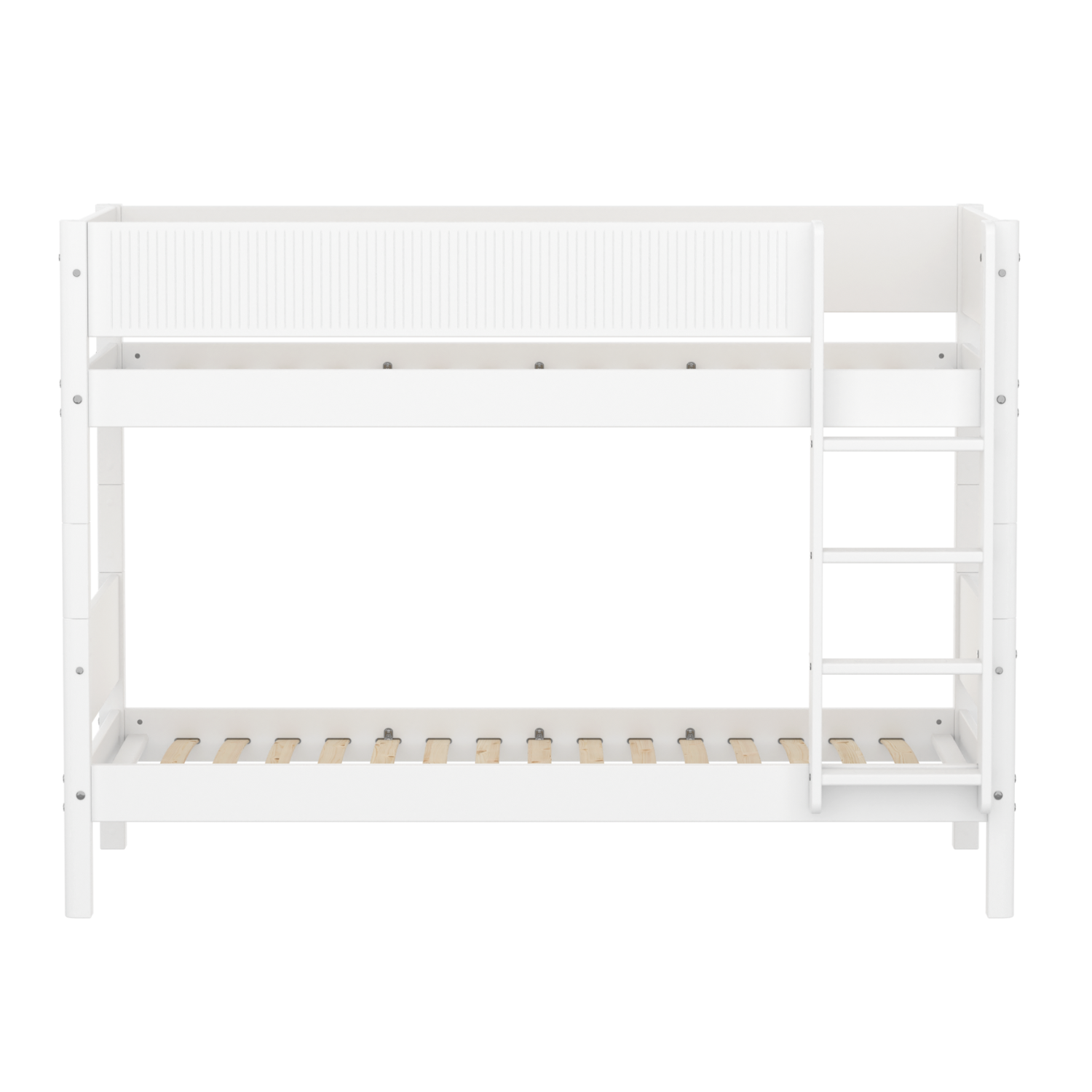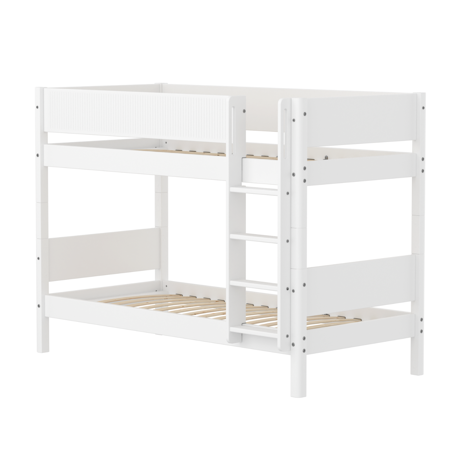 Das WHITE Etagenbett mit gerader Leiter ist die ideale, platzsparende Lösung für kleinere Wohnungen. Die Leiter hat rutschfeste Stufen und integrierte Griffe und kann an beiden Bettenden aufgestellt werden.
