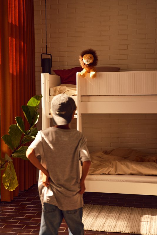 FLEXA Betten begleiten Kinder vom Kleinkind- bis ins Teenageralter – sie lassen sich zu Etagenbetten, Spielbereichen oder Lernplätzen umbauen. Entwickelt für Flexibilität, Langlebigkeit und Nachhaltigkeit.