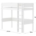 Hochbett 184 cm mit Leiter und Absturzsicherung, 90x200 cm, Weiß