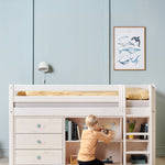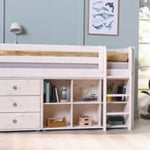 Bücherregal mit 1 Regalboden Das Regal hat 1 verstellbaren Boden und passt unter das Fußende eines halbhohen 90 cm Bettes. Hergestellt aus PEFC™-zertifizierter massiver Kiefer und Sperrholz.