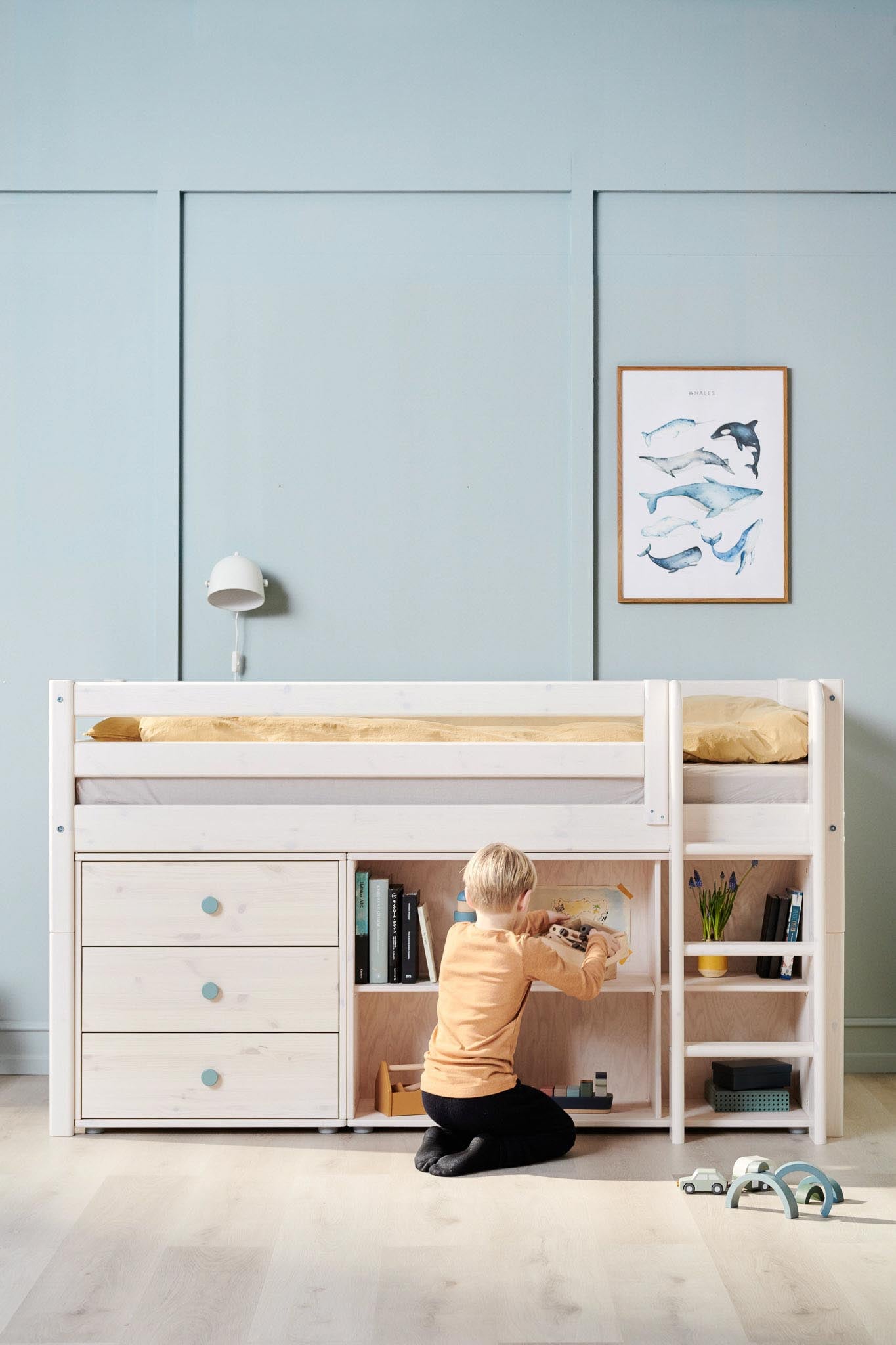 FLEXA Betten begleiten Kinder vom Kleinkind- bis ins Teenageralter – sie lassen sich zu Etagenbetten, Spielbereichen oder Lernplätzen umbauen. Entwickelt für Flexibilität, Langlebigkeit und Nachhaltigkeit.