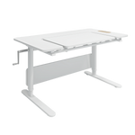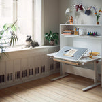 MOBY Middle Up ist der ideale Schreibtisch für die Bedürfnisse eines heranwachsenden Kindes. Der vordere Teil der Schreibtischplatte ist im Bereich von 59 bis 83 cm höhenverstellbar. Der mittlere Teil der Schreibtischplatte kann um bis zu 32 Grad den Anforderungen des Kindes entsprechend verändert werden, um eine korrekte Sitzhaltung zu erreichen und eine gesunde Lebensweise am Arbeitsplatz zu unterstützen. Mit seinen abgerundeten Ecken und den Details aus Holz, wie zum Beispiel die Bleistifttasche, ist das Design modern und skandinavisch. Die Tischplatte hat eine hochwertige Laminatoberfläche, Rahmen und Pfosten sind aus pulverbeschichtetem Metall. Zubehör kann separat erworben werden. Der integrierte Kunststoffeinsatz besteht aus ABS. Die Abdeckung besteht aus MDF mit Eichenfurnier.