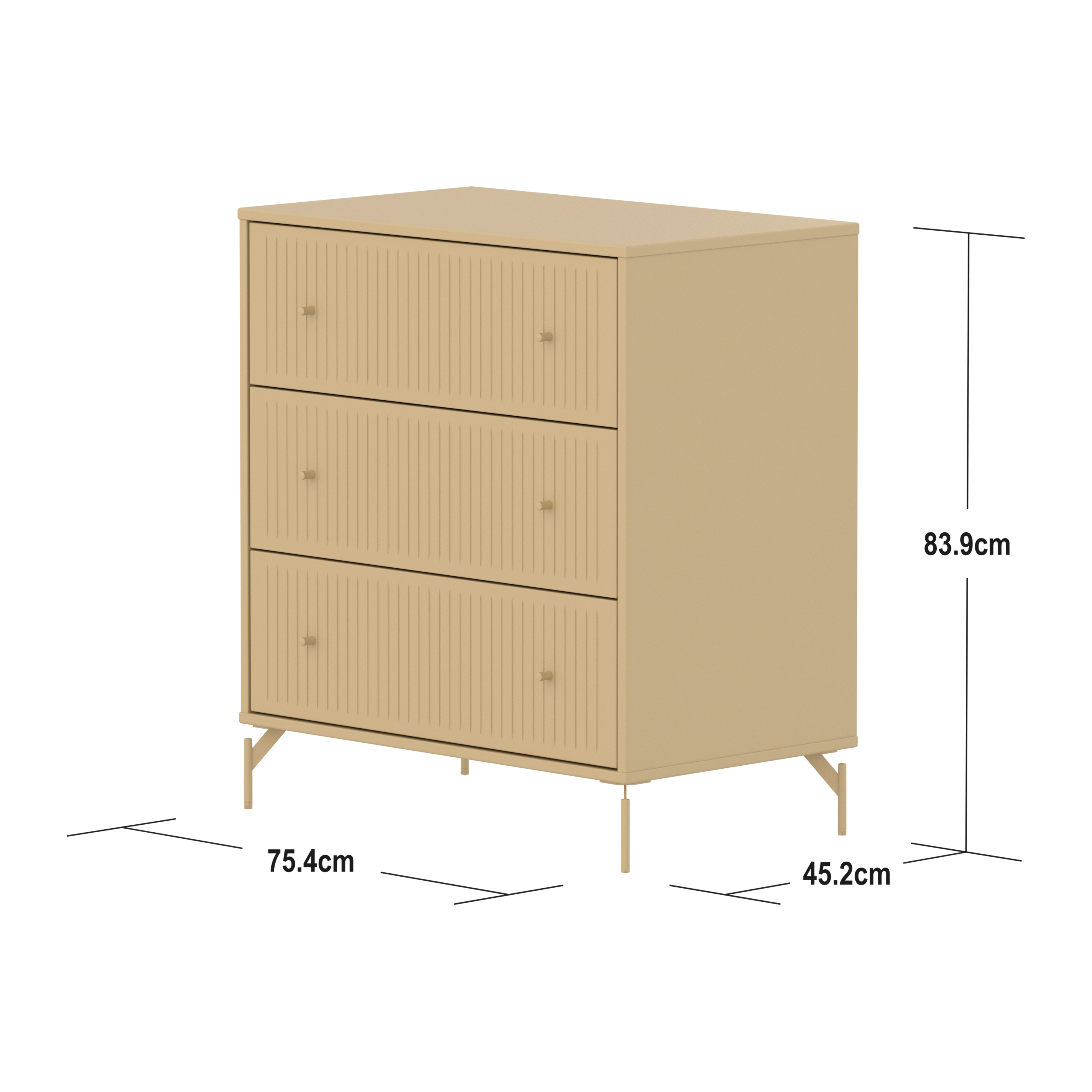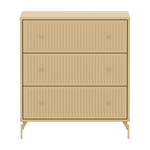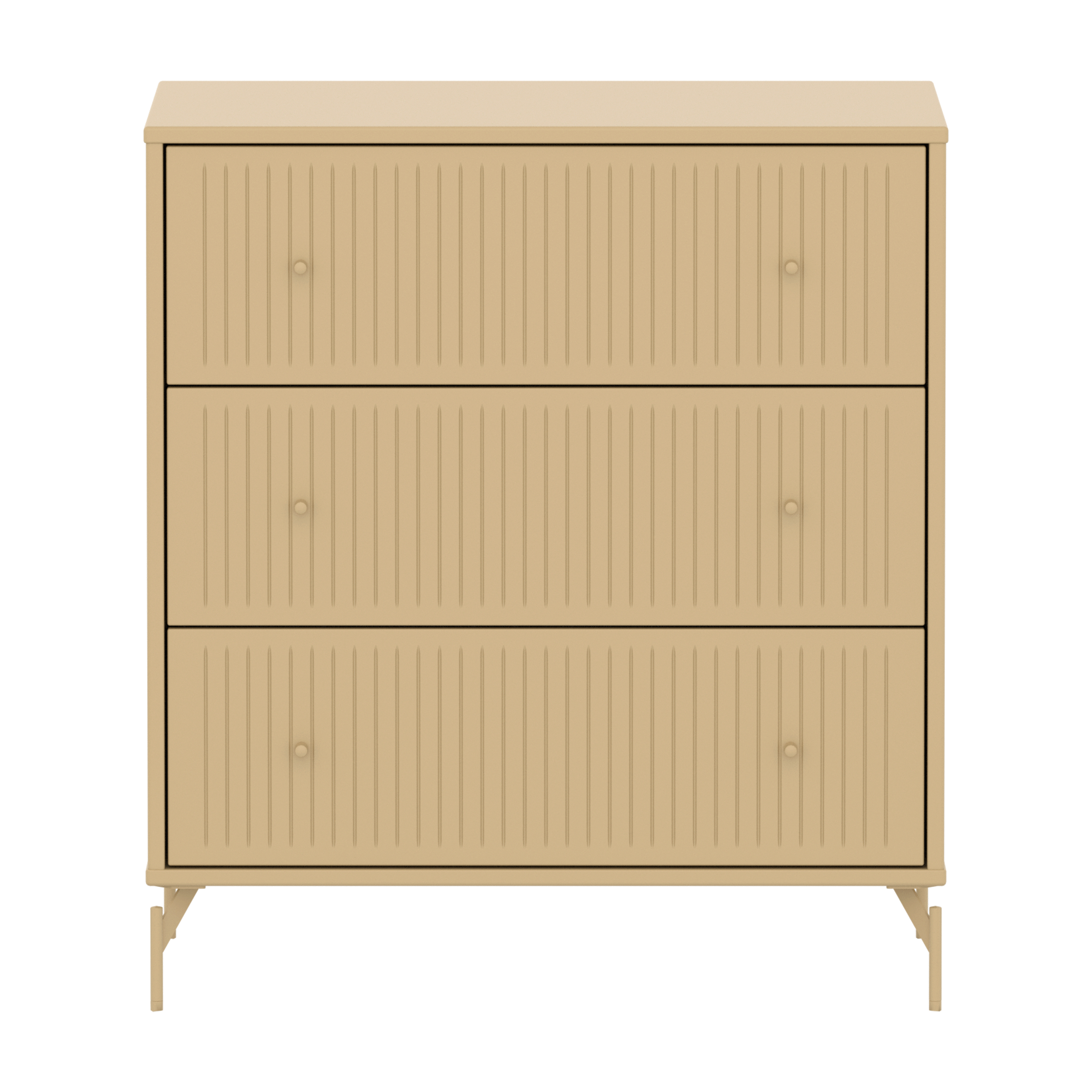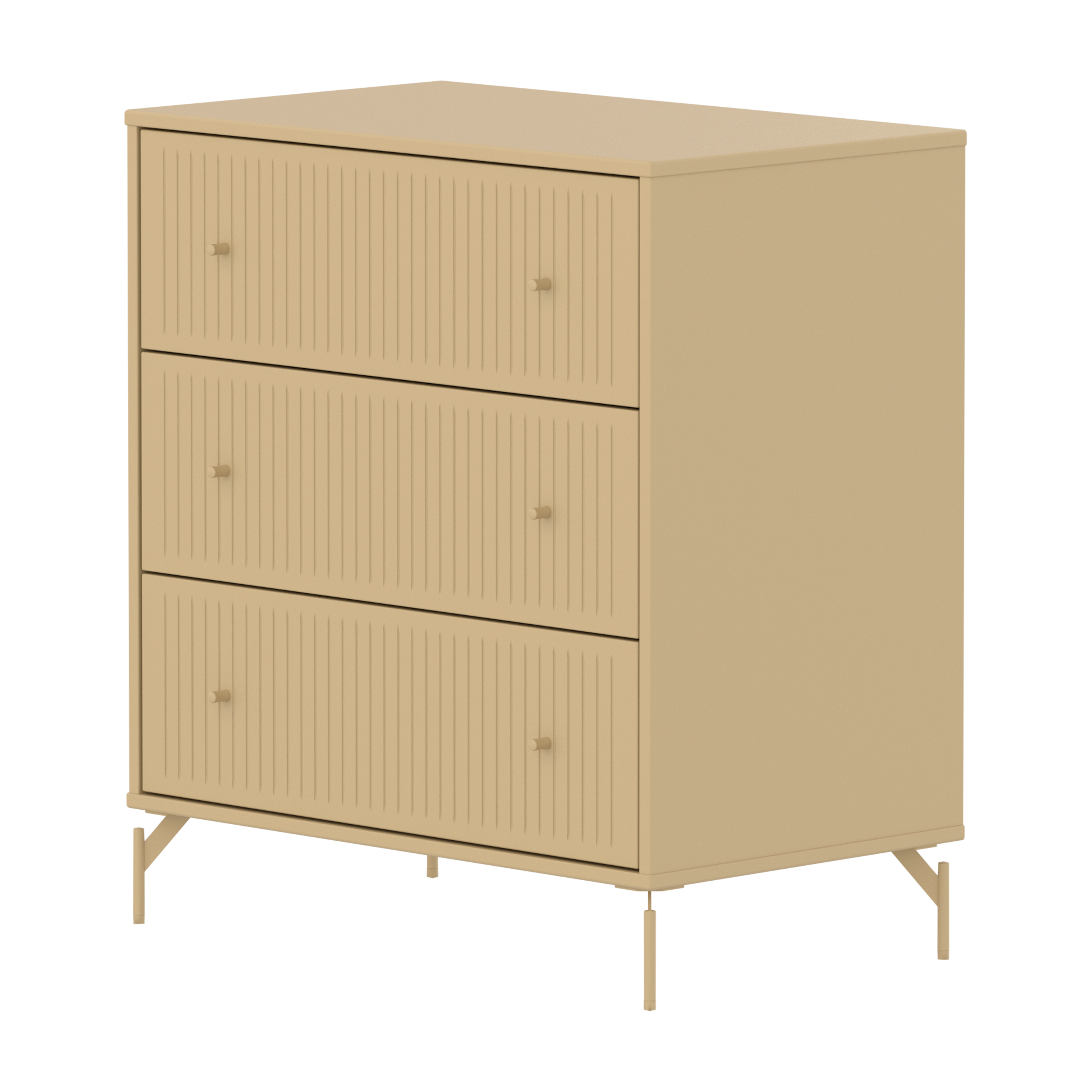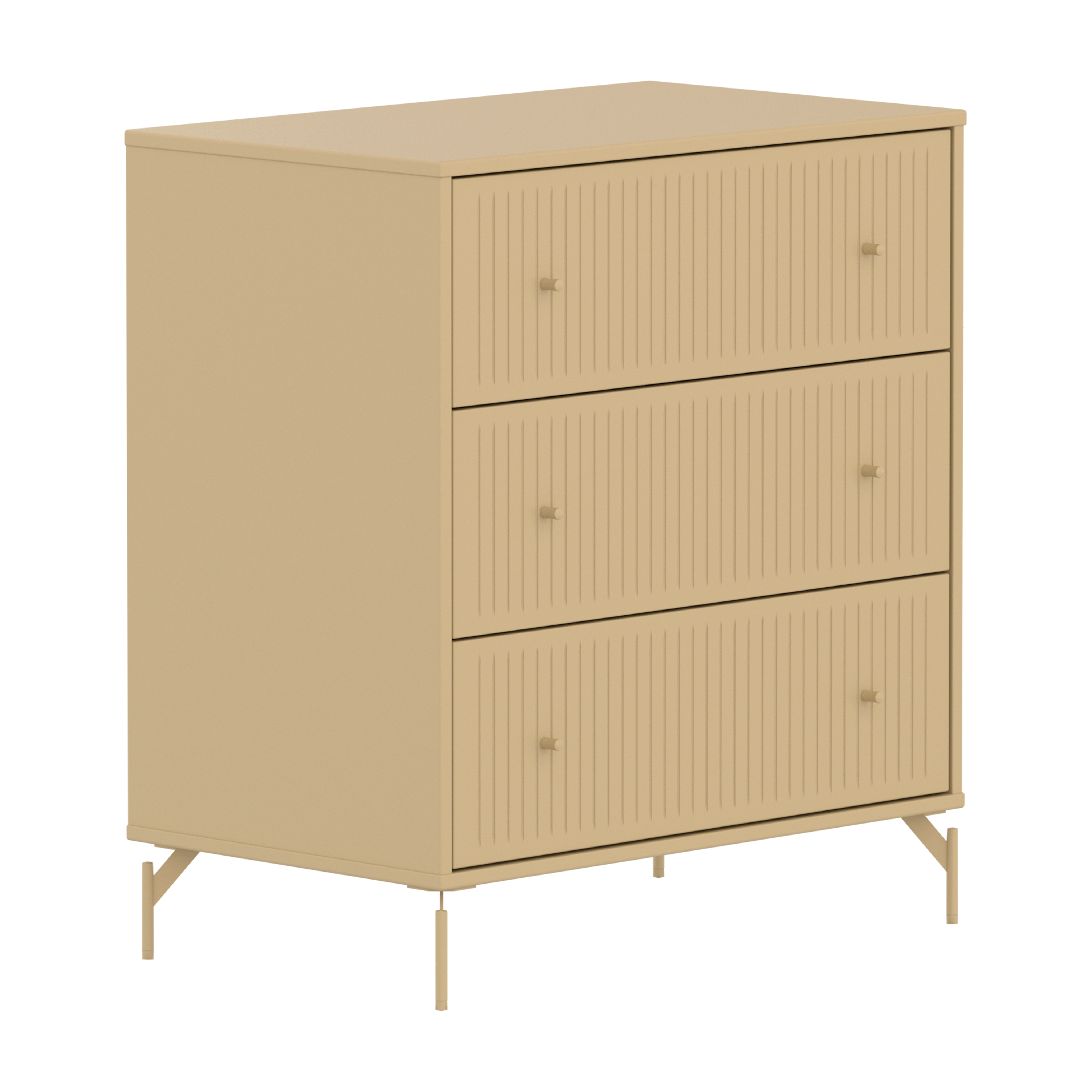 The chest with 3 drawers is made from durable FSC® certified MDF, and the lacquer is free from harmful substances, ensuring both robustness and resistance to wear and tear. Choose between oat metal legs or plastic feet, both are included in the package.