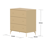 The FLEXA SAGA Chest in Sand features 3 drawers with soft-close mechanisms to protect little fingers. When using the plastic feet, the chest with 3 drawers can be placed under our mid-high beds for efficient use of space in the kids room. The round sand metal knobs add a simple, clean design element.