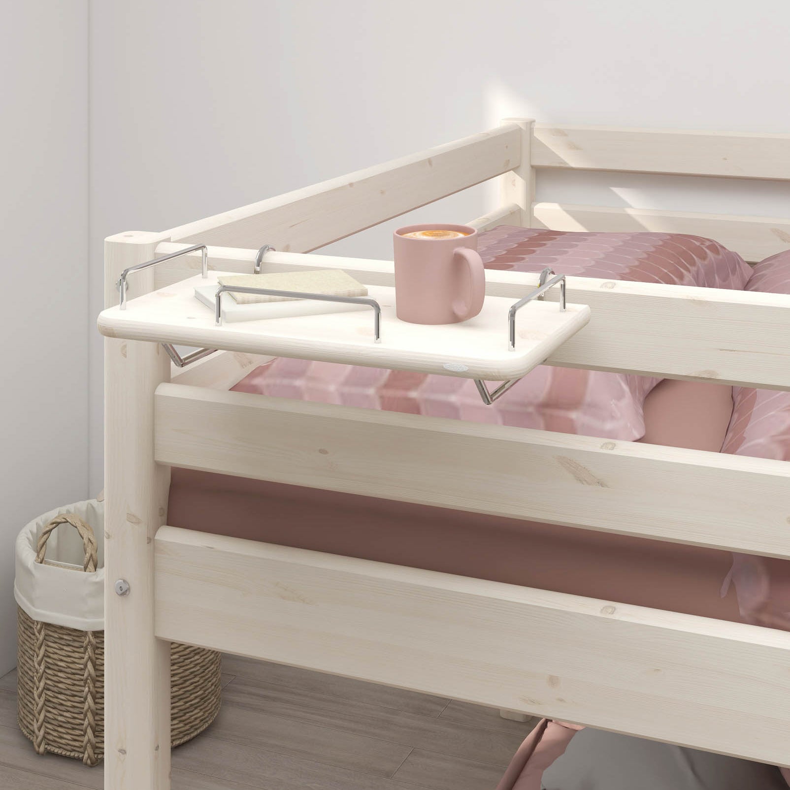 FLEXA CLASSIC beds are made from durable, high-quality pinewood and include rounded edges, non-slip steps, and integrated grips on bunk beds for extra security. All FLEXA products meet strict international safety standards, ensuring a stable and secure sleeping environment for your child.