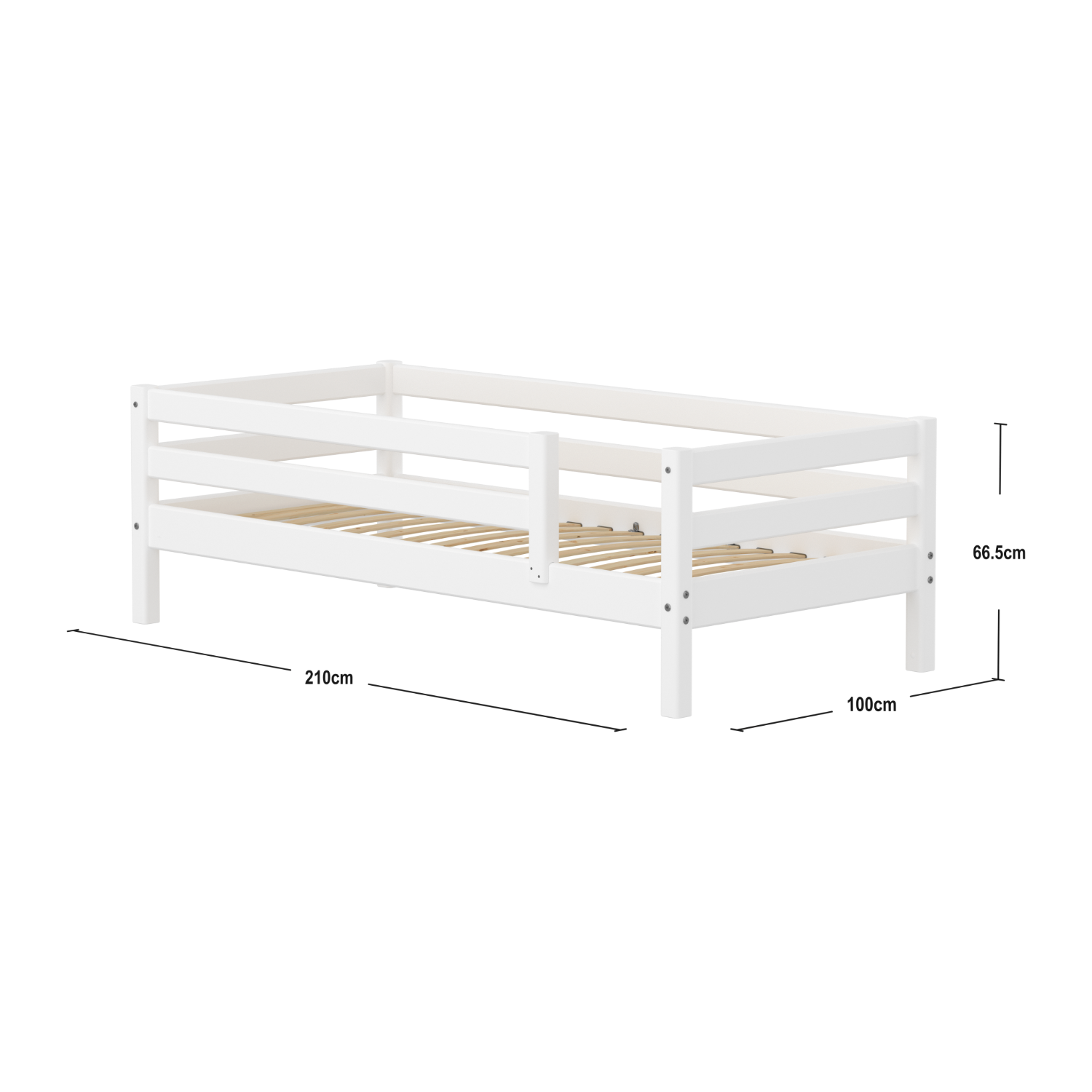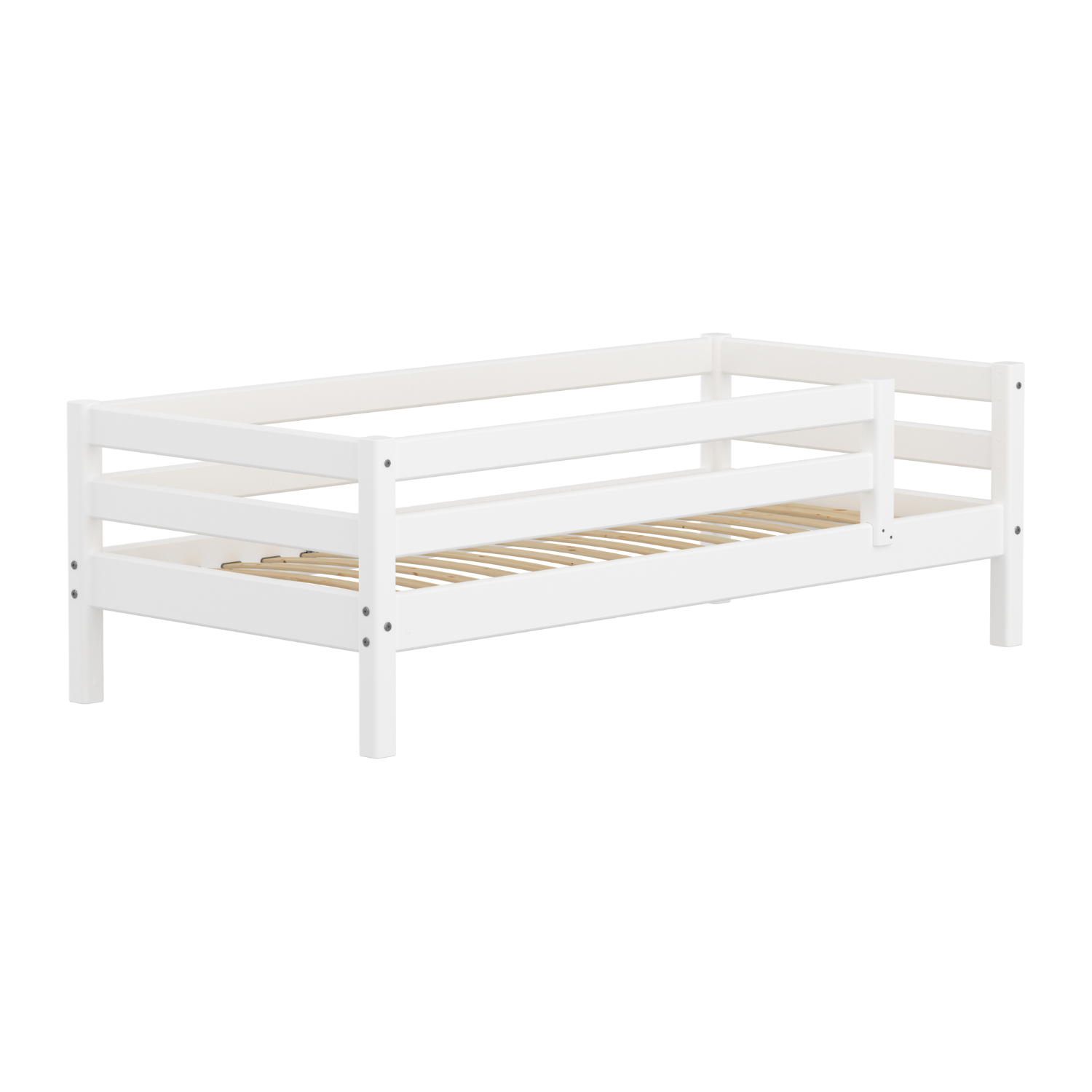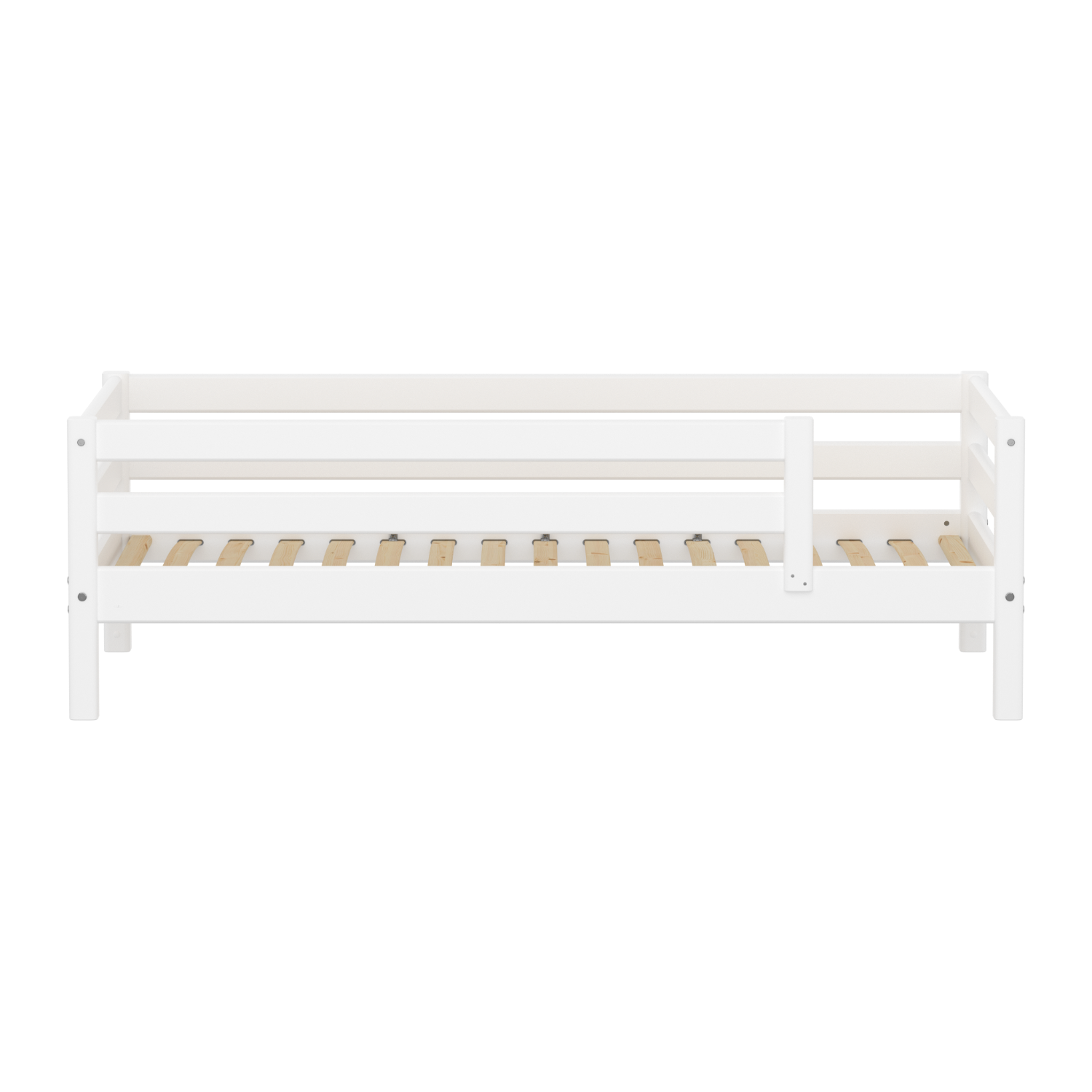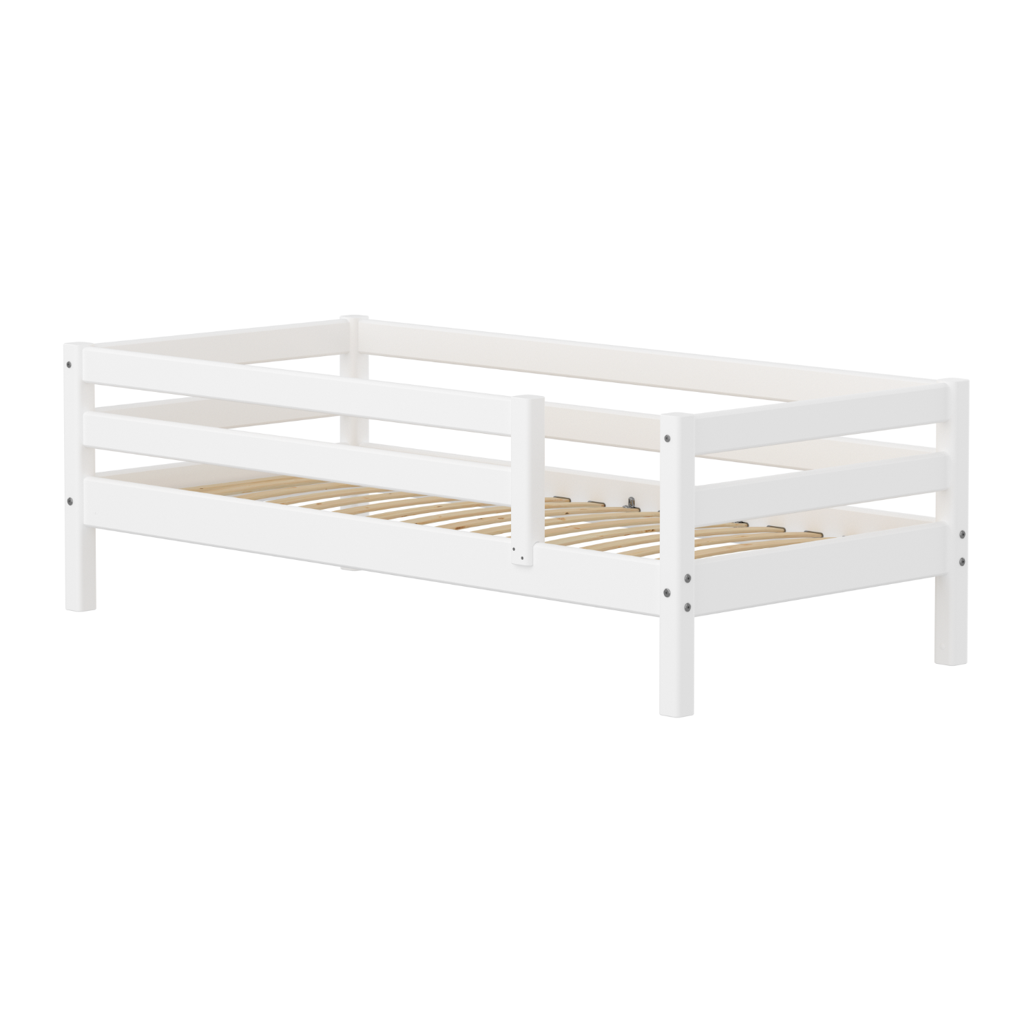 Single Bed with Safety Rail, 90x200 cm, Full White