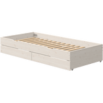 CLASSIC pull-out bed with integrated slat base and fold-out legs and soft rubber castors. The pull-out bed can be used underneath the Classic single bed and is perfect for sleepovers. The bed is available in three colours and is made of solid pinewood.