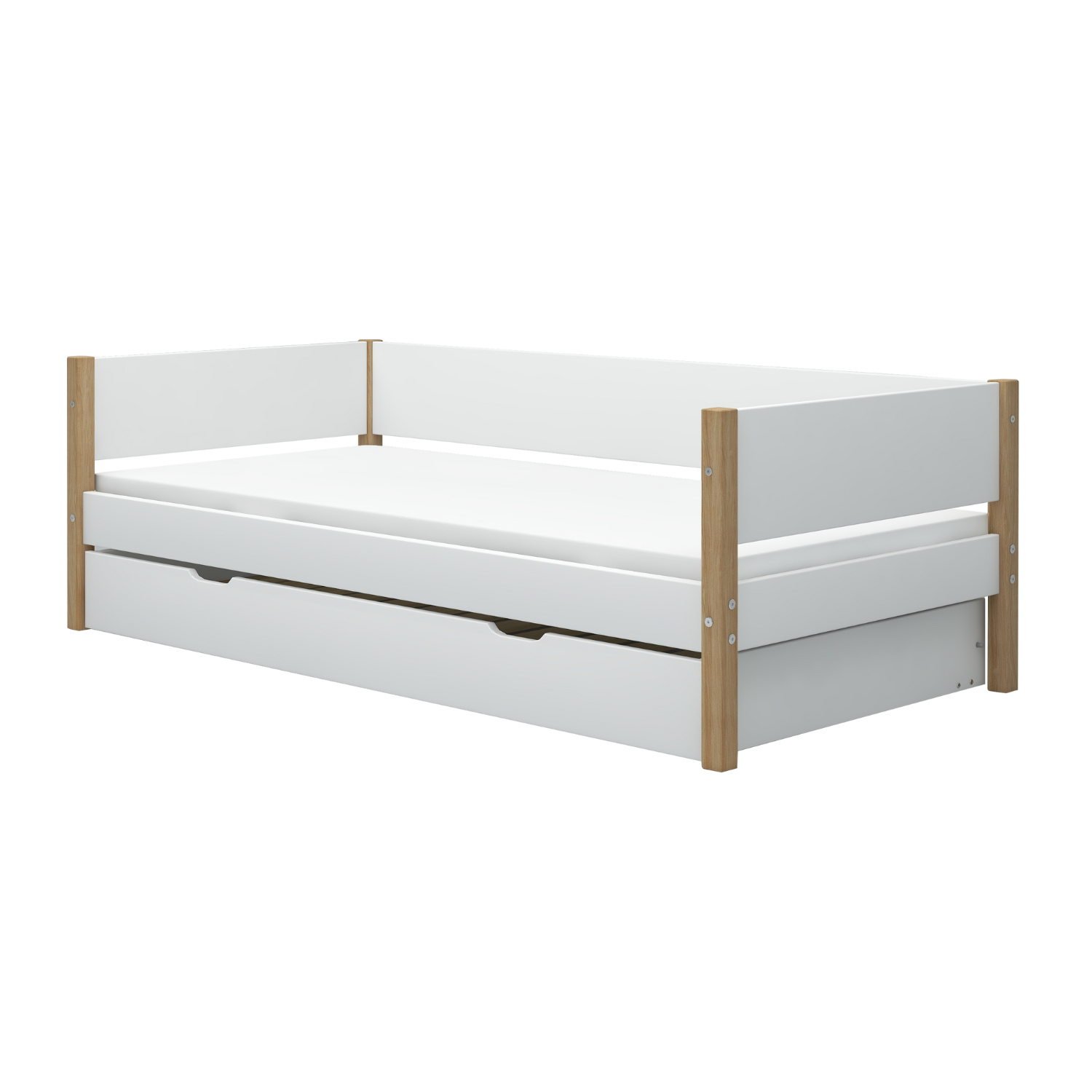 FLEXA's lineup of single beds for kids is a perfect blend of safety and style. Safety features include safety-rails for the littlest snoozers that offer secure and comfortable sleep spaces. Some models come with a pull-out bed for unplanned sleepovers and you can also add underbed drawers for easy storage options. Take it to the next level with our house beds that transform your child’s room into a magical space. The perfect children’s bed that is made for creating special moments.