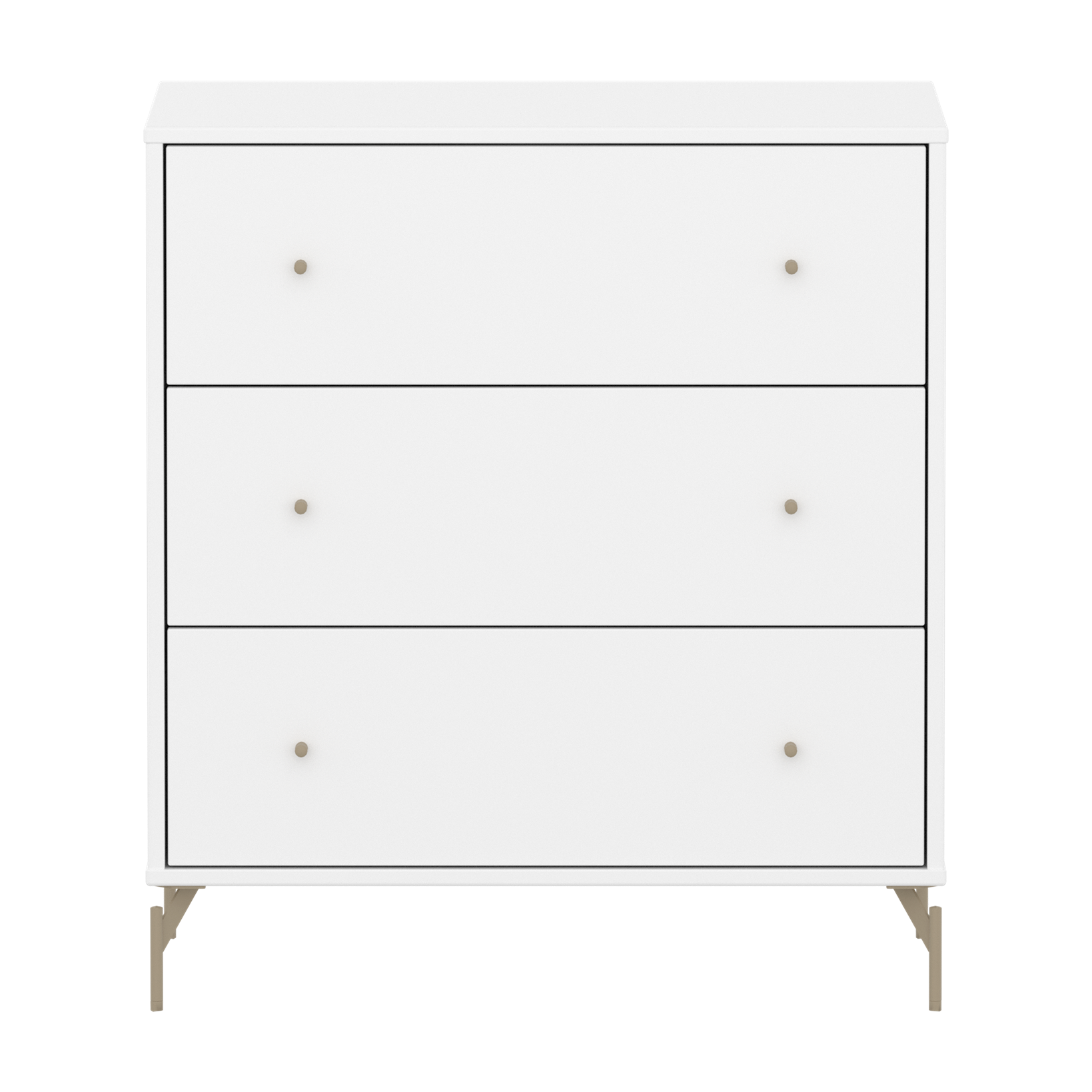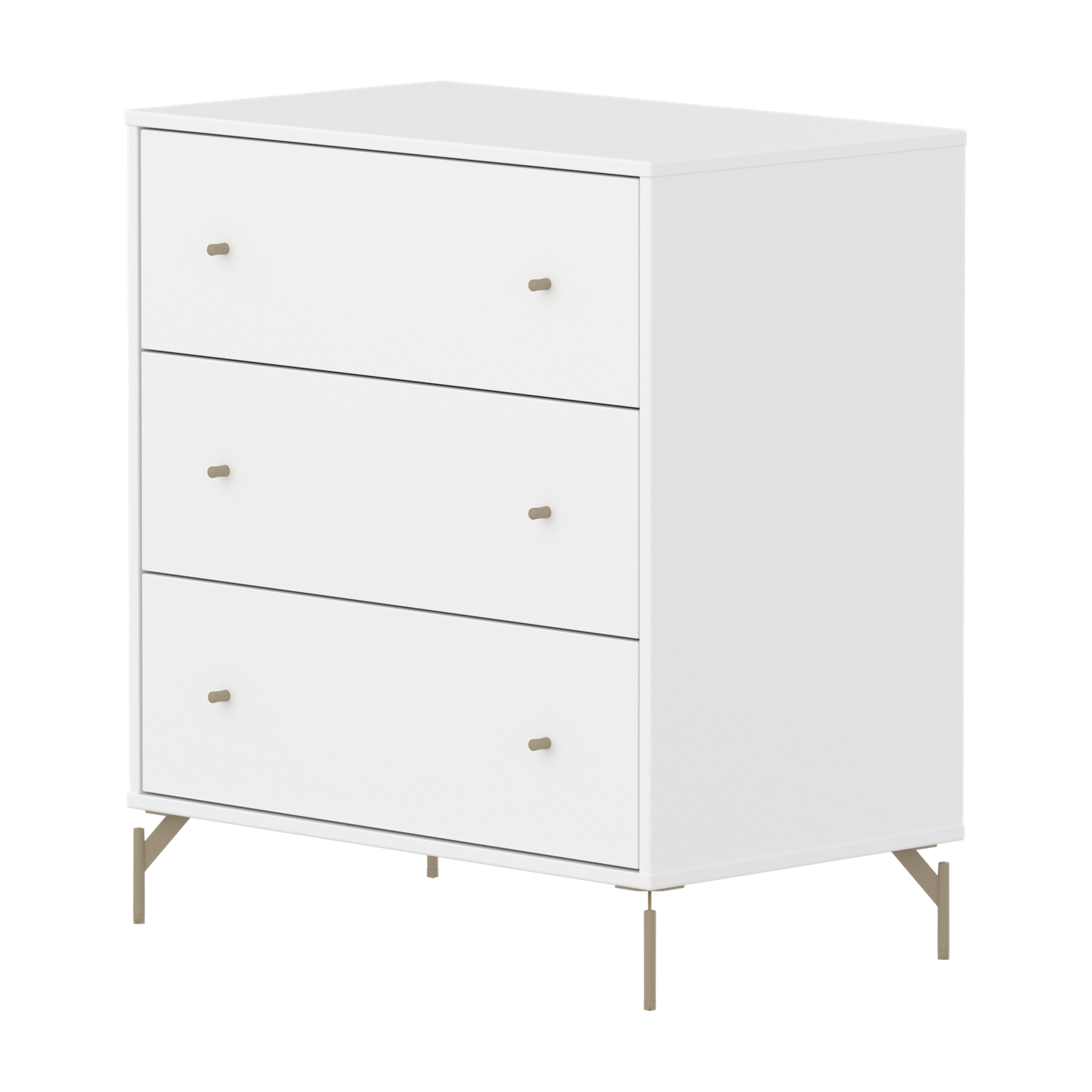 The chest with 3 drawers is made from durable FSC® certified MDF, and the lacquer is free from harmful substances, ensuring both robustness and resistance to wear and tear. Choose between oat metal legs or plastic feet, both are included in the package.