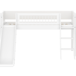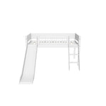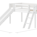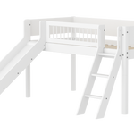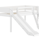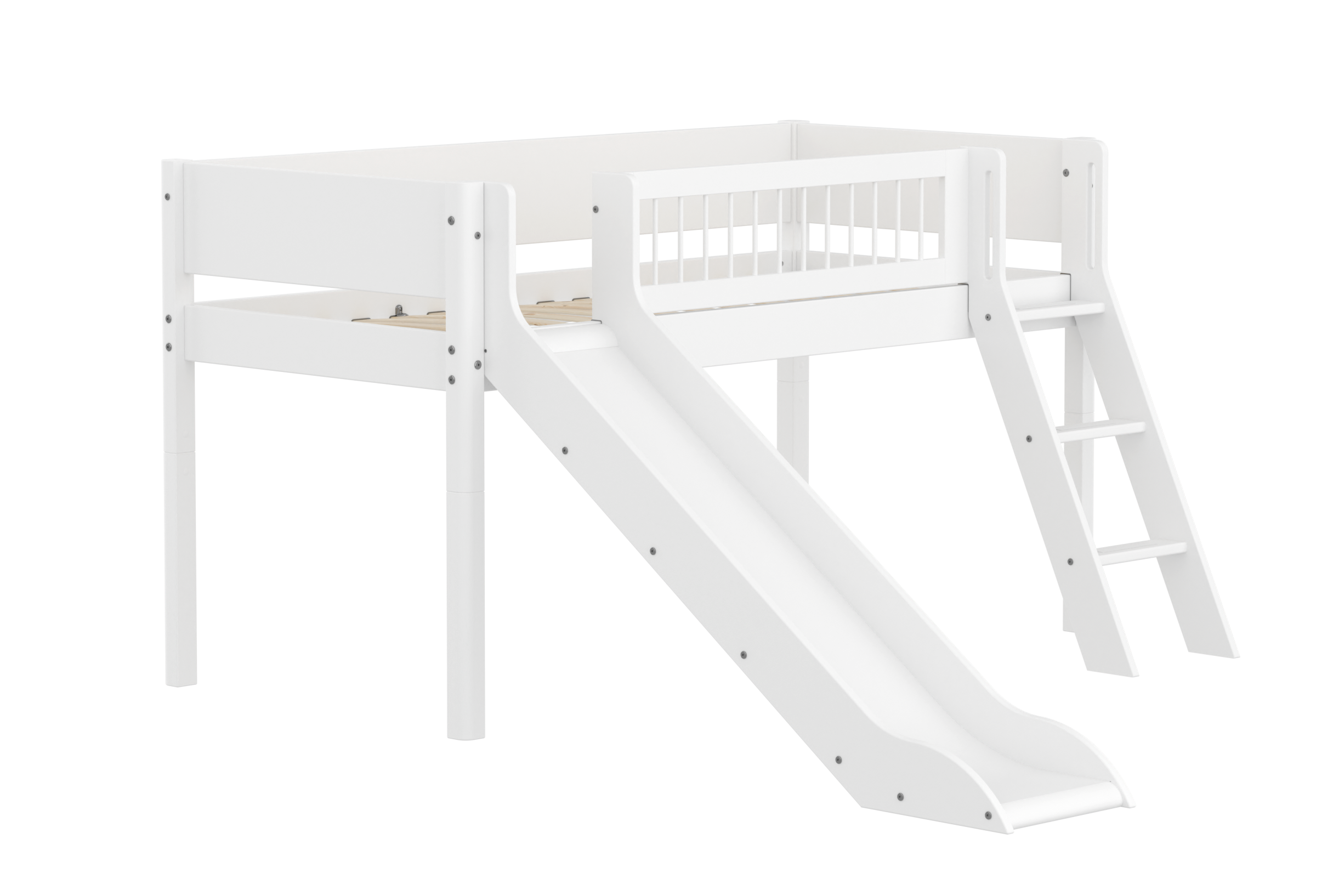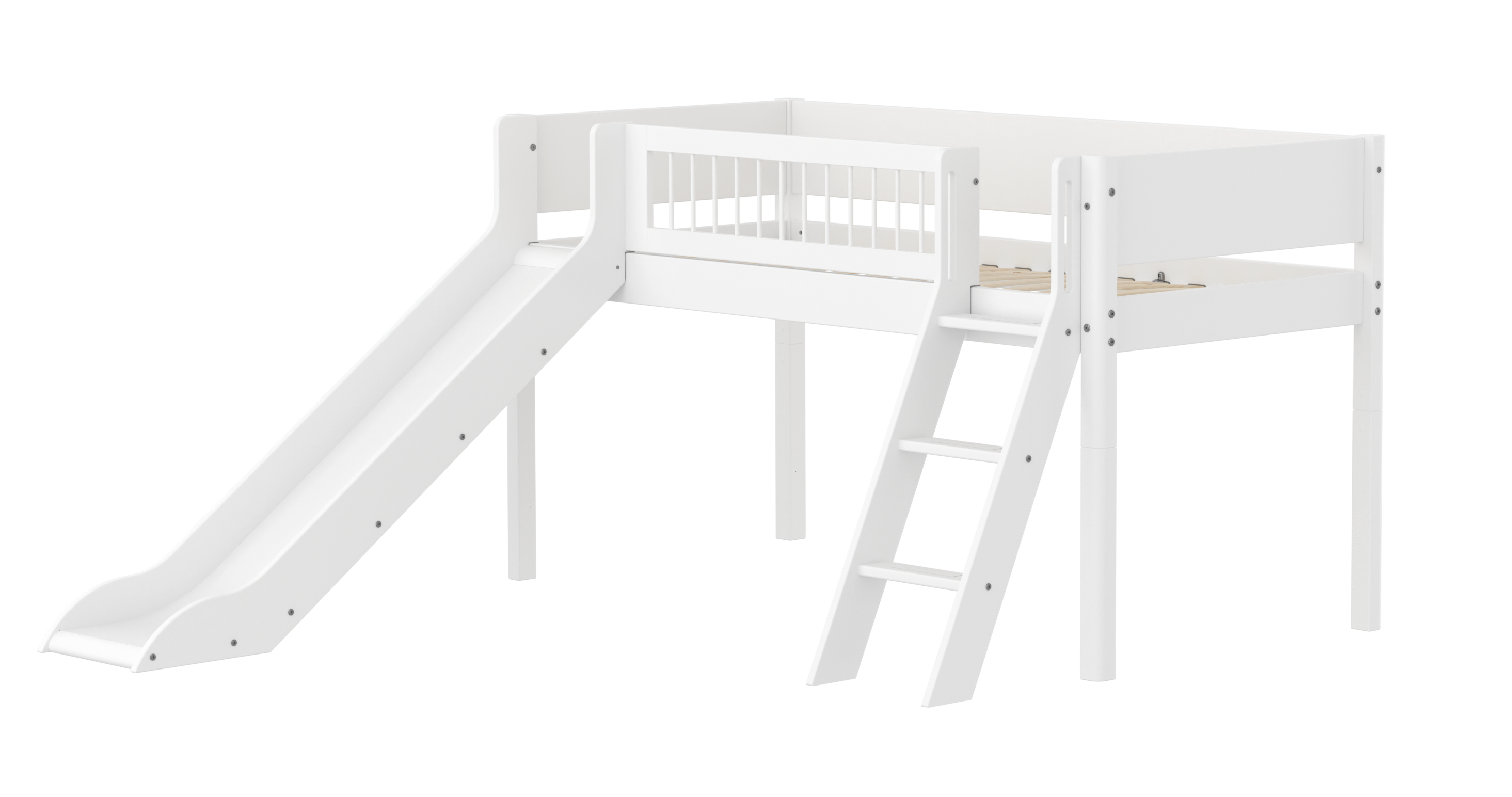 WHITE mid-high bed with slanting ladder, safety rail and slide. The bed, that will turn the child's room into a playground!