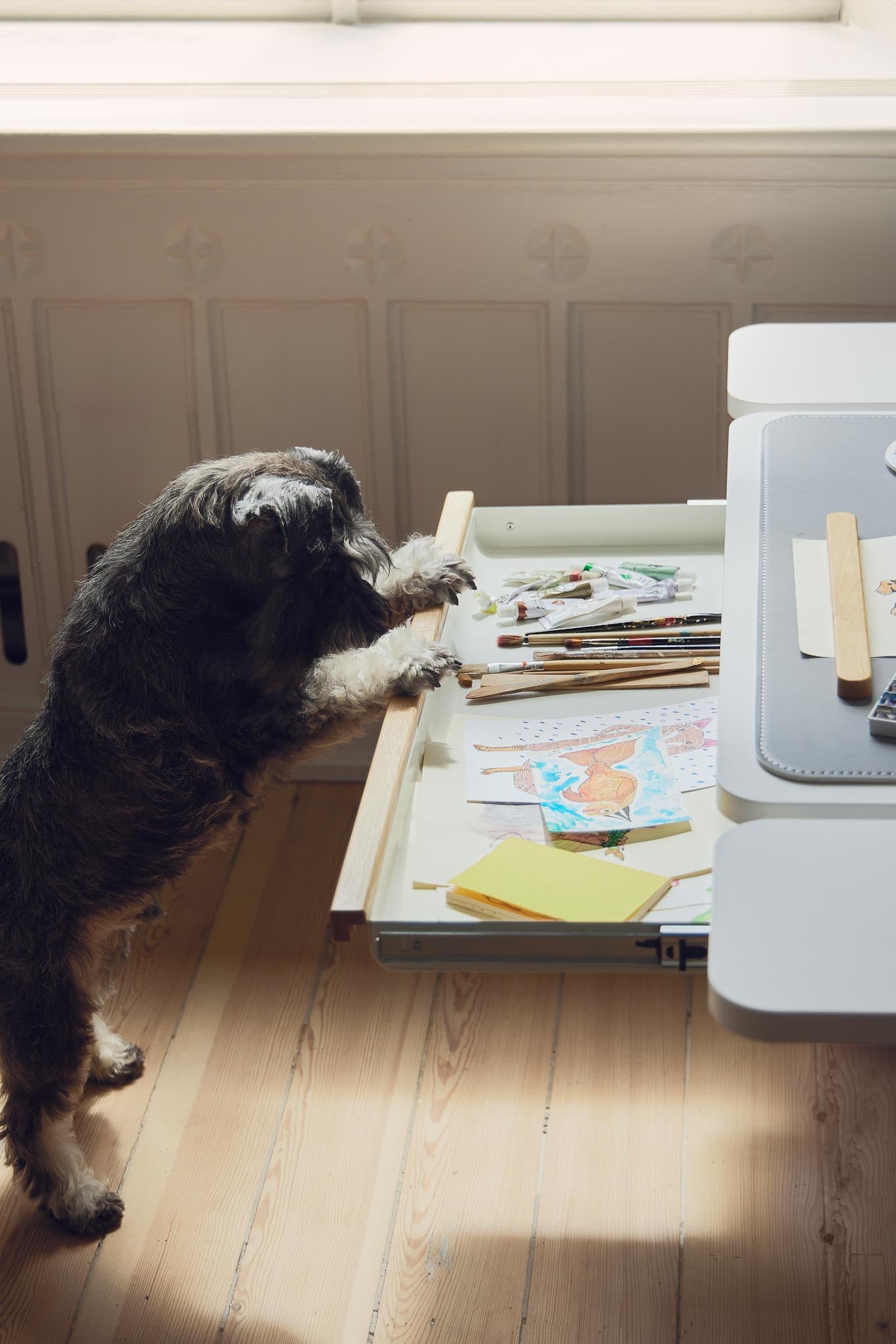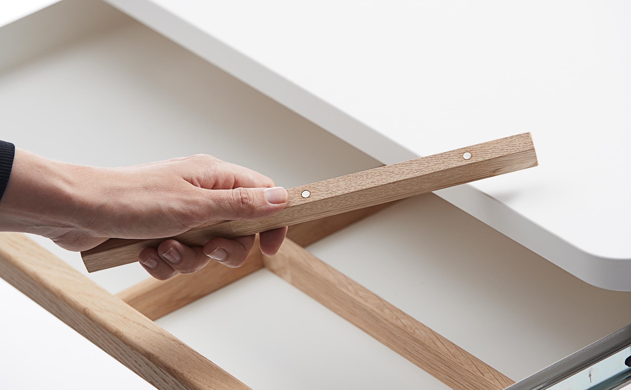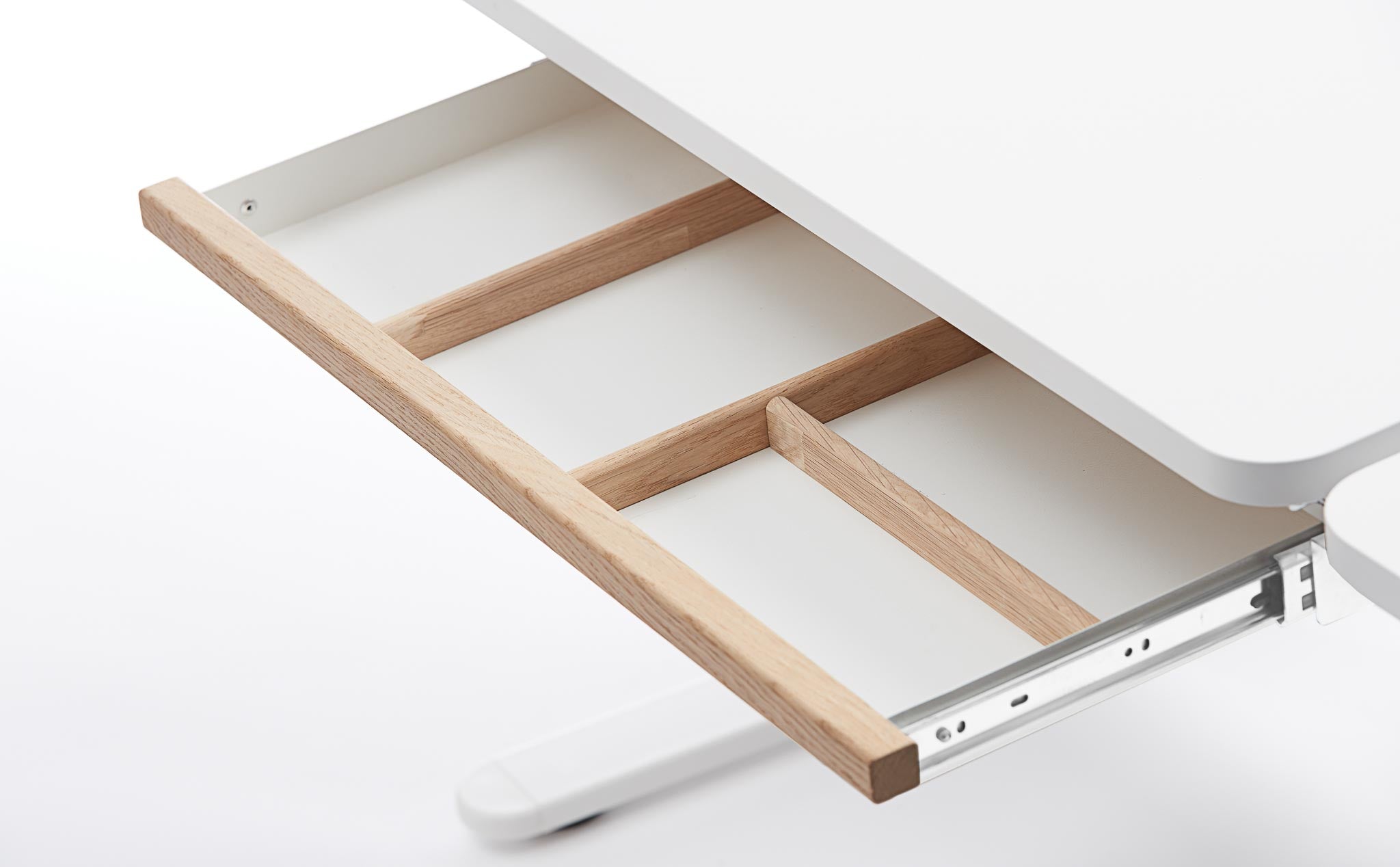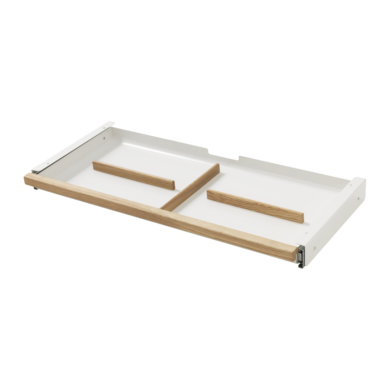 Keep everything in its right place! Style your MOBY study desk with this beautiful metal drawer with oak front (including rails). Adjust the bars in the drawer so it fits your needs.