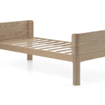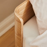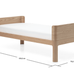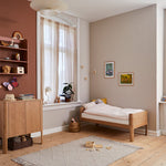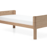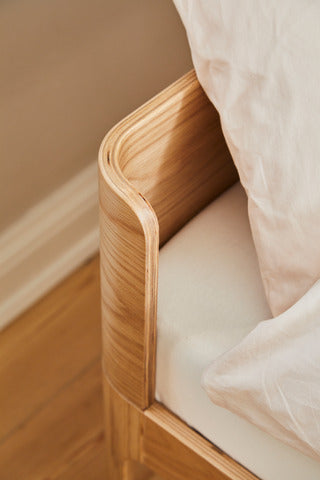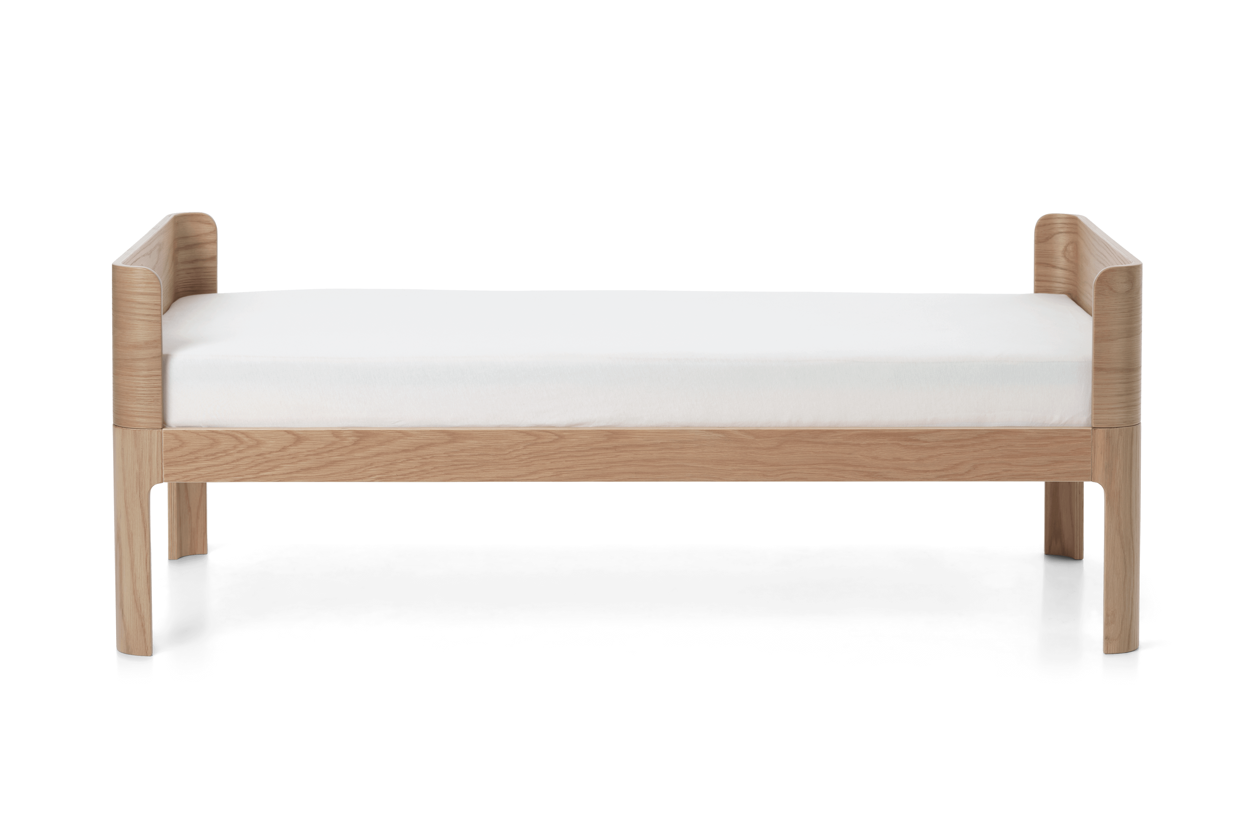 Small thoughtful details, such as the fine joinery and the legs’ continuing curve, make this junior bed stand out as a friendly and well-proportioned piece of furniture. The bed easily matches other design objects, colourful toys, and fine display items you keep in your nursery and the rest of your home.