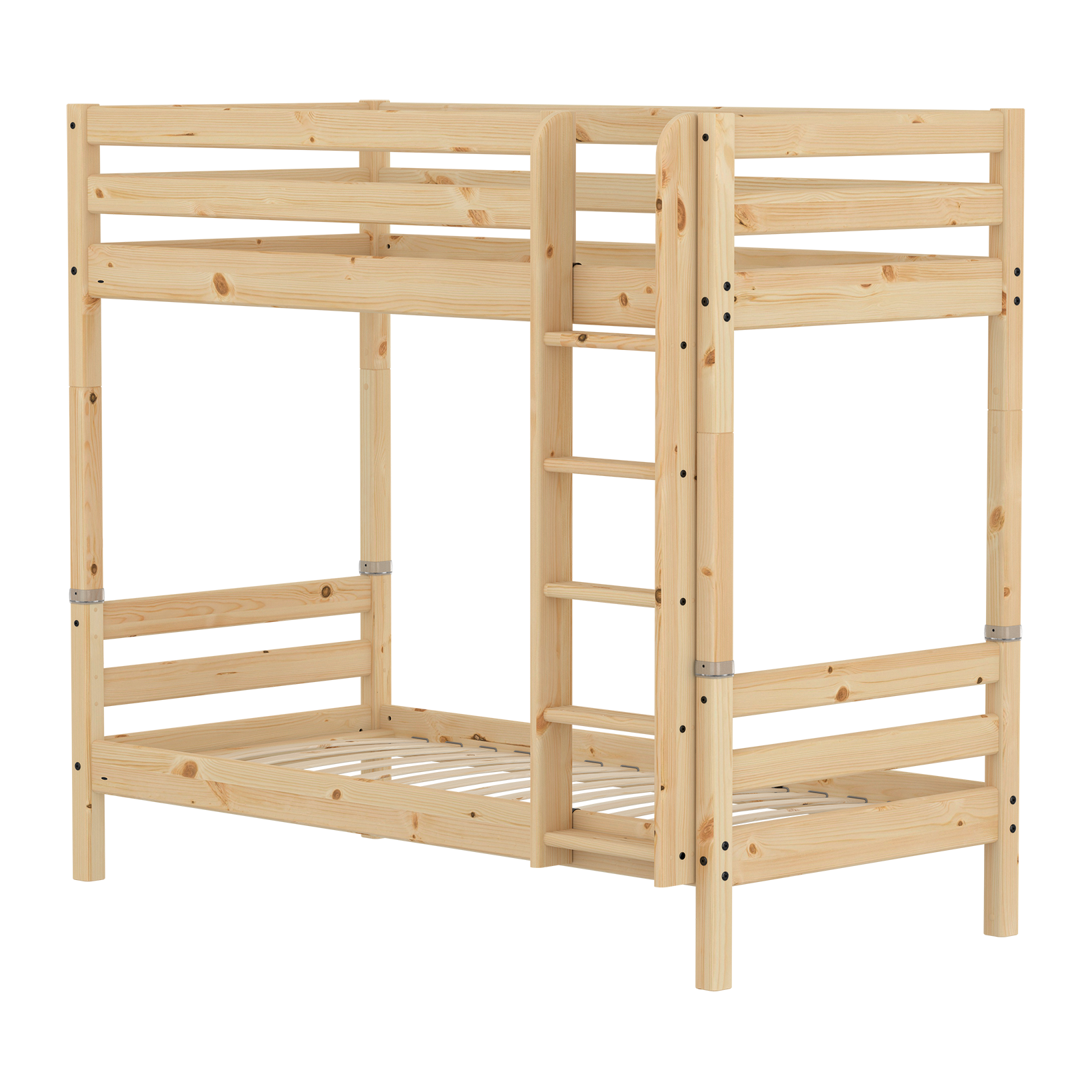 Our children’s bunk beds are manufactured from quality materials, such as solid pine, birch, oak and veneer. These materials have been carefully selected both in terms of their look and durability, so the beds can last for many years and even generations. All of our bunk beds have passed EU’s strictest product safety standards, both when it comes to quality and safety. In other words, FLEXA bunk beds are designed to be aesthetically pleasing, functional and safe, which you see in the ladder that has anti-slip steps and integrated handles. You can also attach a safety rail on the top bunk. You can feel at ease knowing your child is sleeping comfortably and safely in a FLEXA bunk bed.