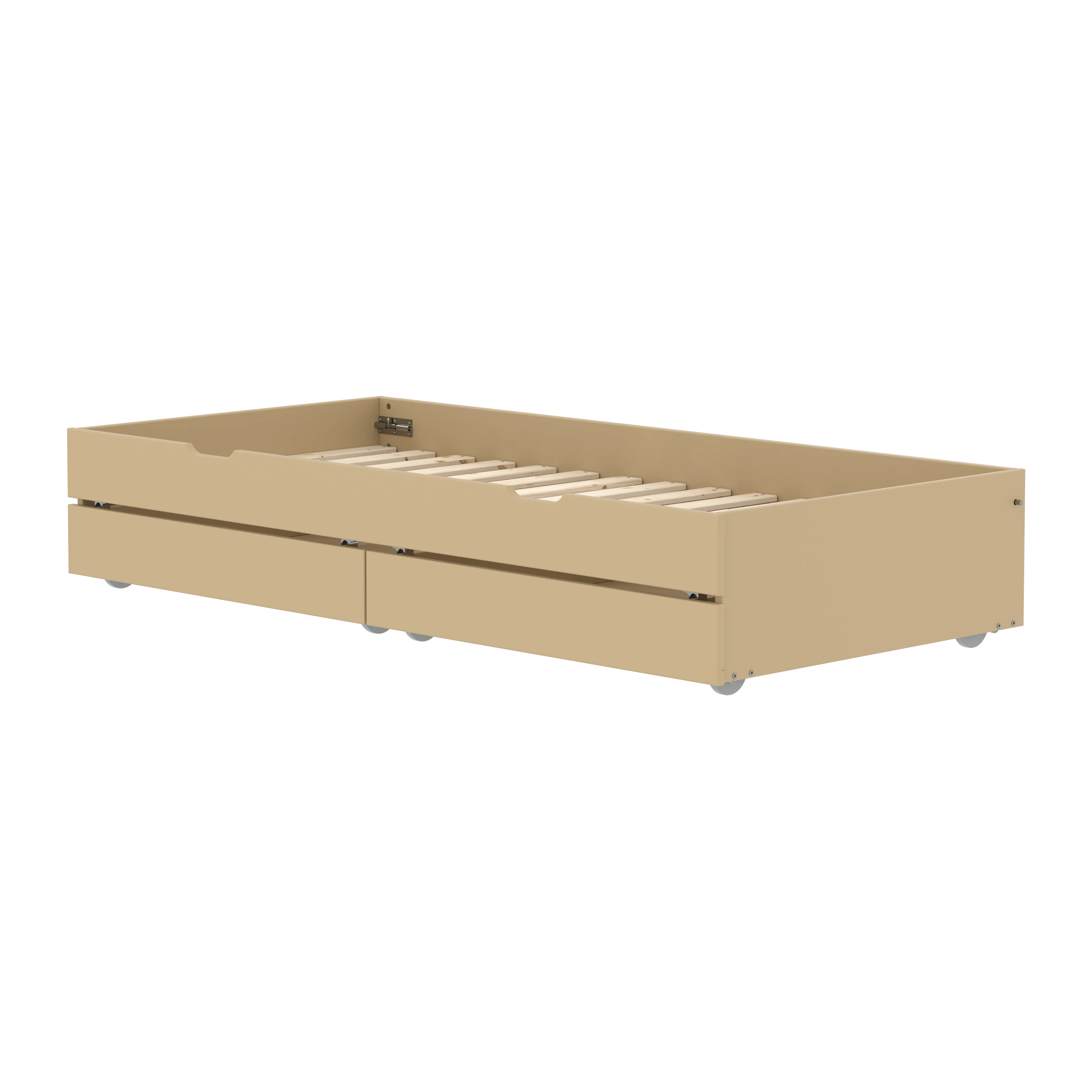 Soft rubber castors ensure smooth movement on hard floors, making it easy to pull out the bed or access the drawers whenever needed. By adding this solution, you free up valuable floor space for play while always having an extra bed ready for sleepovers.