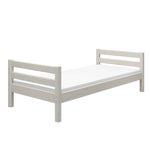 Classic bed with integrated moduled slat base for optimum comfort. Add a safety rail to the bed and use it for your toddler, who just has grown out of the baby bed. The bed has a classic and Scandinavian design, is available in three colours and has foot- adn head board. Add a drawer underneath the bed to store the child’s bed linen or toys. The Classic collection growns with the children. By adding short legs to the single bed, you can rebuild the bed into a mid-high bed. And by adding high legs to the bed, you can rebuild the bed to a high bed. The bed is made of solid pinewood. Recommended age: From the age of 3 years.