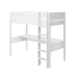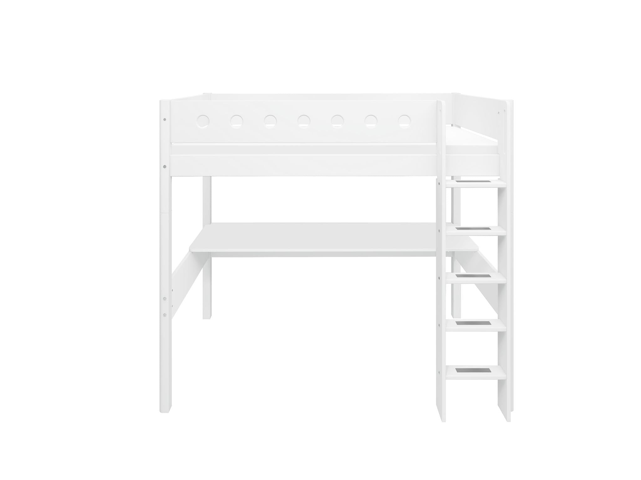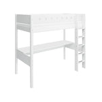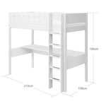 High Bed 184 cm with Desk, Sofa, Ladder and Safety Rail, 90x200 cm, White