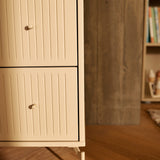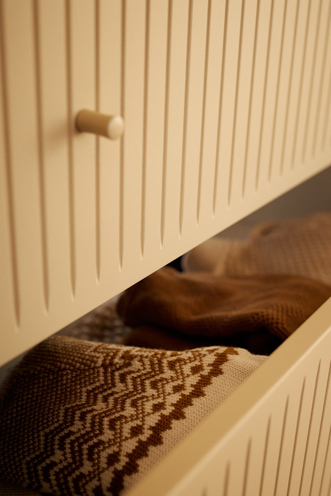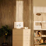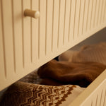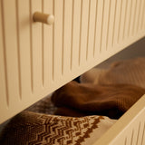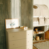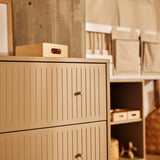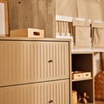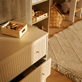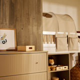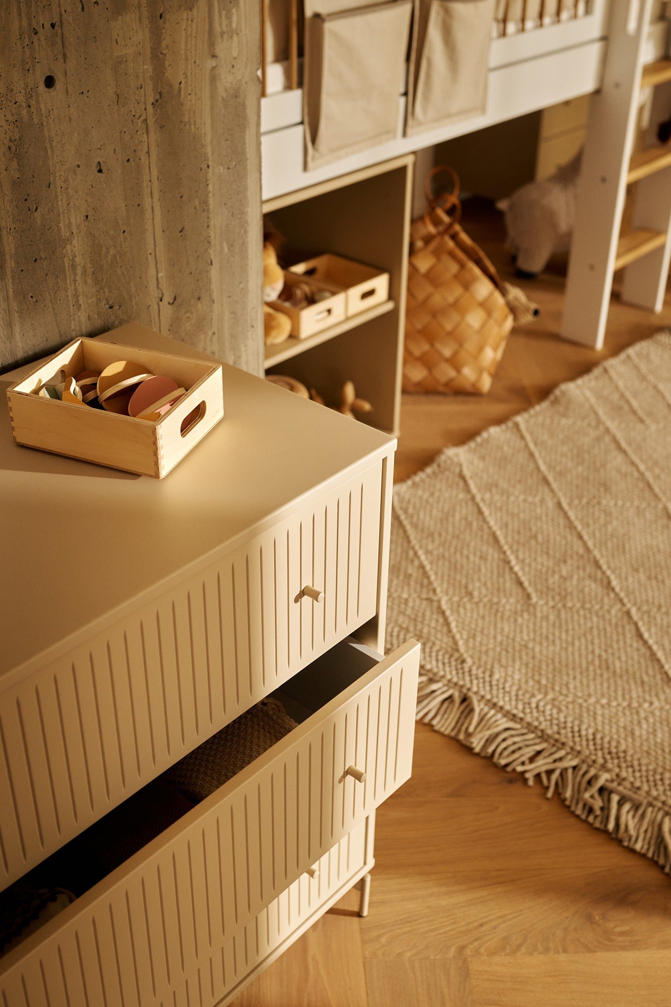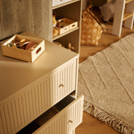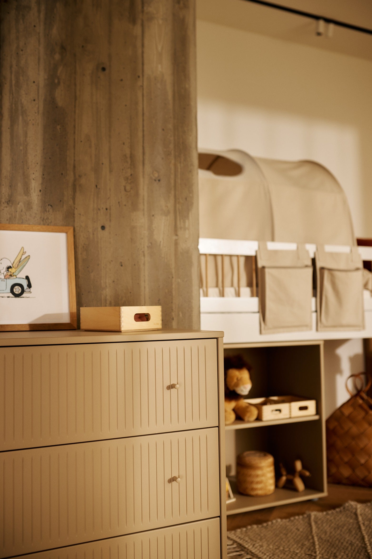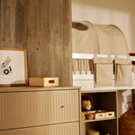 The SAGA Storage collection is inspired by the pristine nature of Denmark's West Coast, where the soft, sandy colour palette reflects the hues of coastal sand, while the grooved details elegantly capture the organic lines found in wind-swept dunes. SAGA Storage offers a timeless design, with lifelong relevance that seamlessly fit with our existing bed systems, allowing for a cohesive and integrated look in any children’s room.