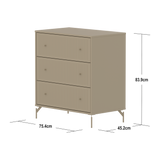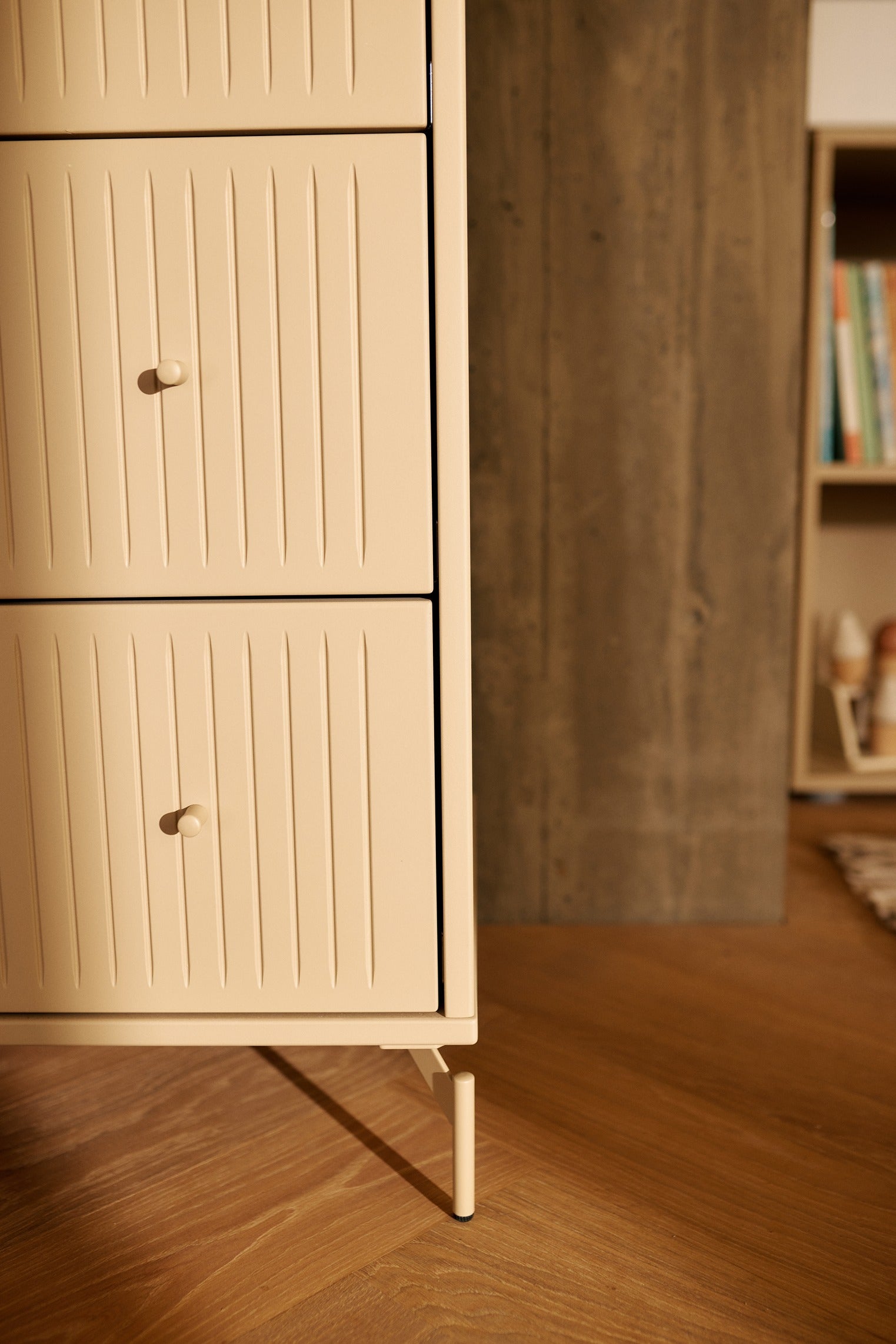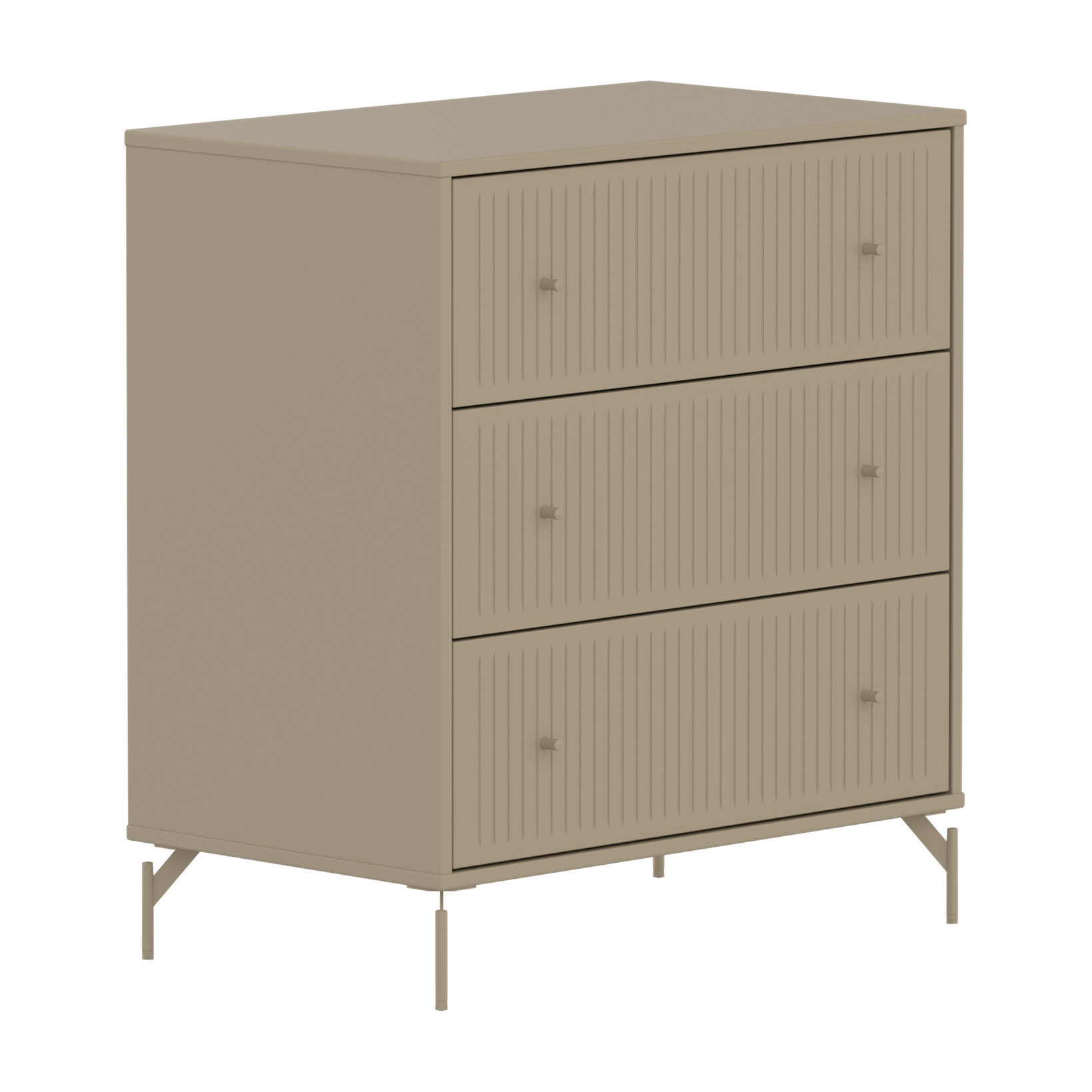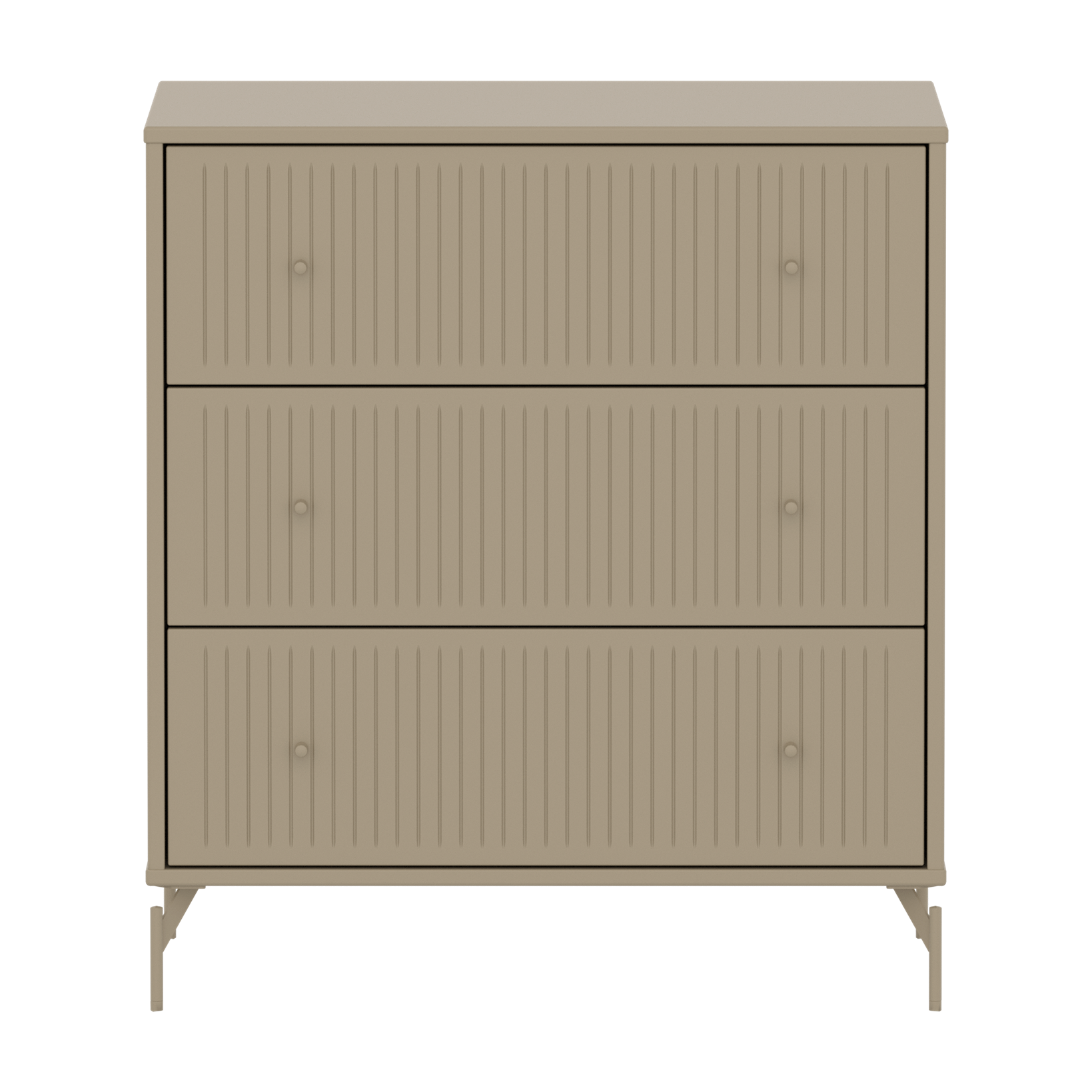 The chest with 3 drawers is made from durable FSC® certified MDF, and the lacquer is free from harmful substances, ensuring both robustness and resistance to wear and tear. Choose between oat metal legs or plastic feet, both are included in the package.