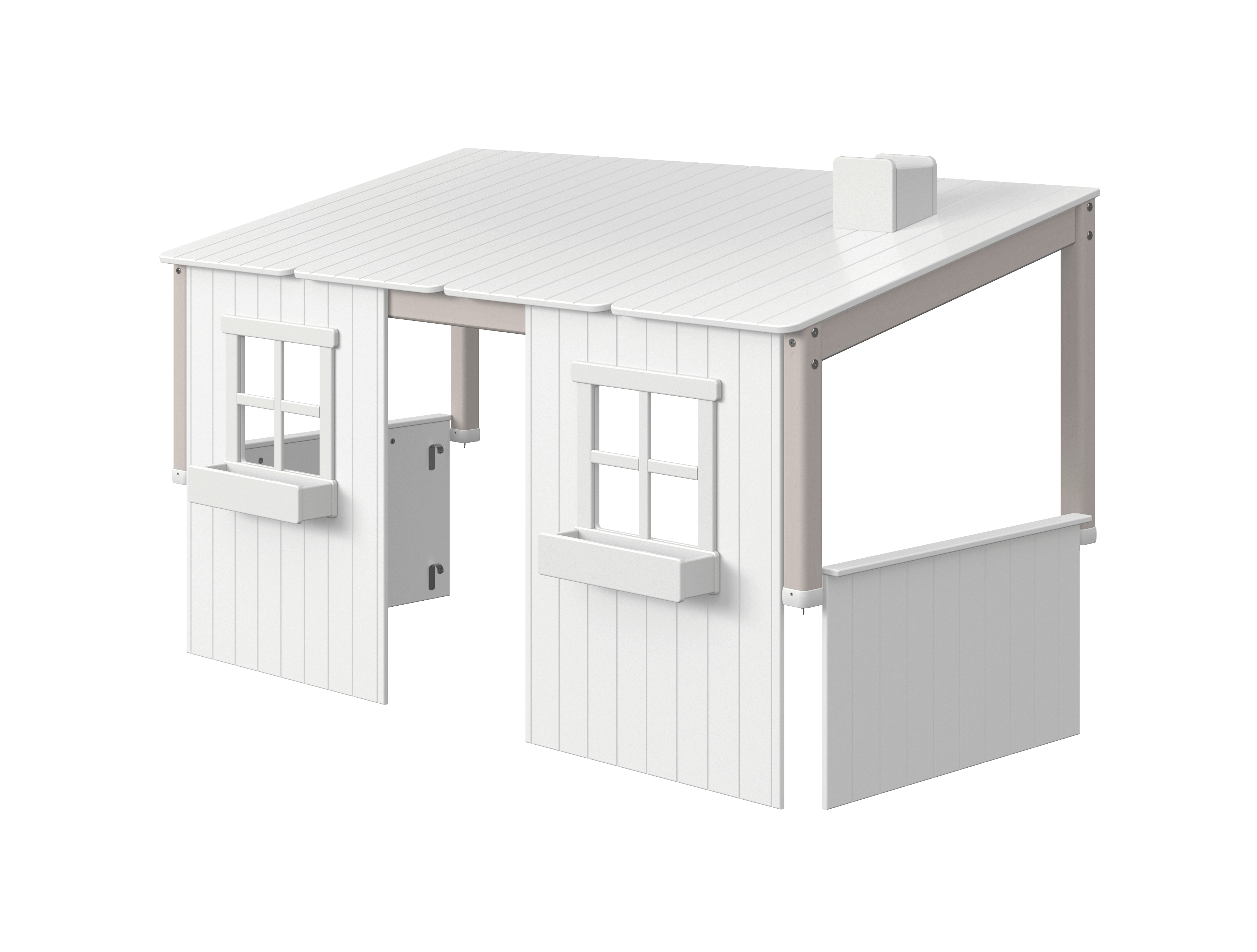 Now you can transform your CLASSIC bed into a small playhouse with window boxes and a chimney. Let your child create a world of their own in the little playhouse, which is inviting to delightful play as well as a good night's sleep. The Classic House is compatibel with Classic single bed and midsleeper. The Classic House has windows and an opening, through which the child can crawl into the bed. The Classic House is more than just a bed, since it creates a private sphere for the child in the room. Add curtains and a garland and make it even more cozy. The bed is available in three colours and is made of solid pinewood. Recommended age: From the age of 3 years.