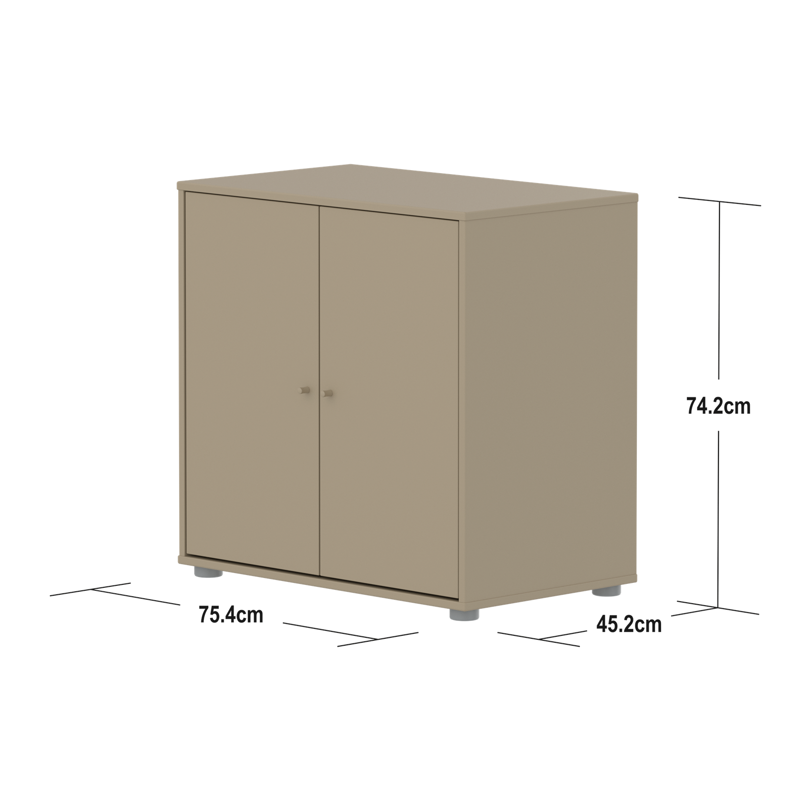 The FLEXA SAGA Cupboard in oat with grooved fronts features 1 adjustable shelf and 2 doors with soft-close to protect little fingers. The round oat metal knobs add a clean, simple look. The cupboard with plastic feet can be placed underneath our mid-high beds to optimize space in smaller rooms.