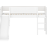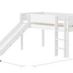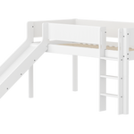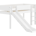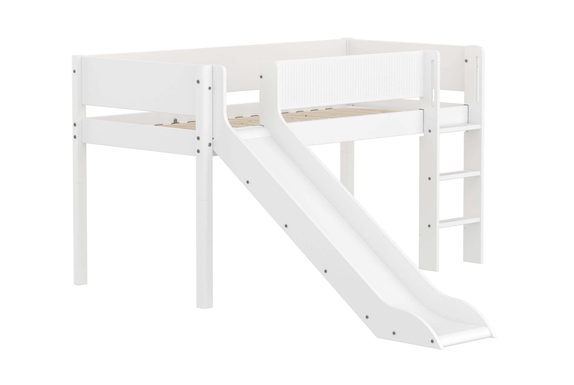 WHITE mid-high bed with slanting ladder and slide. The bed, that will turn the child's room into a playground!