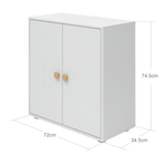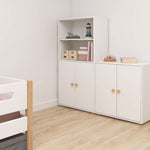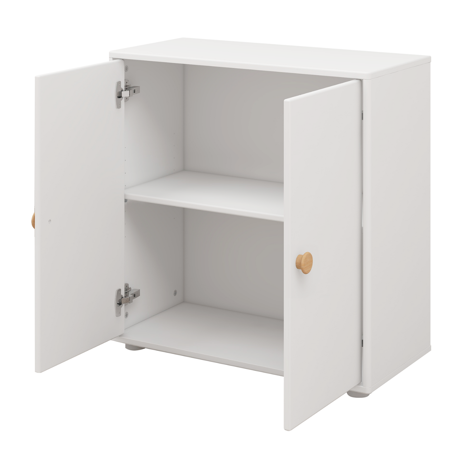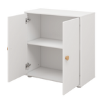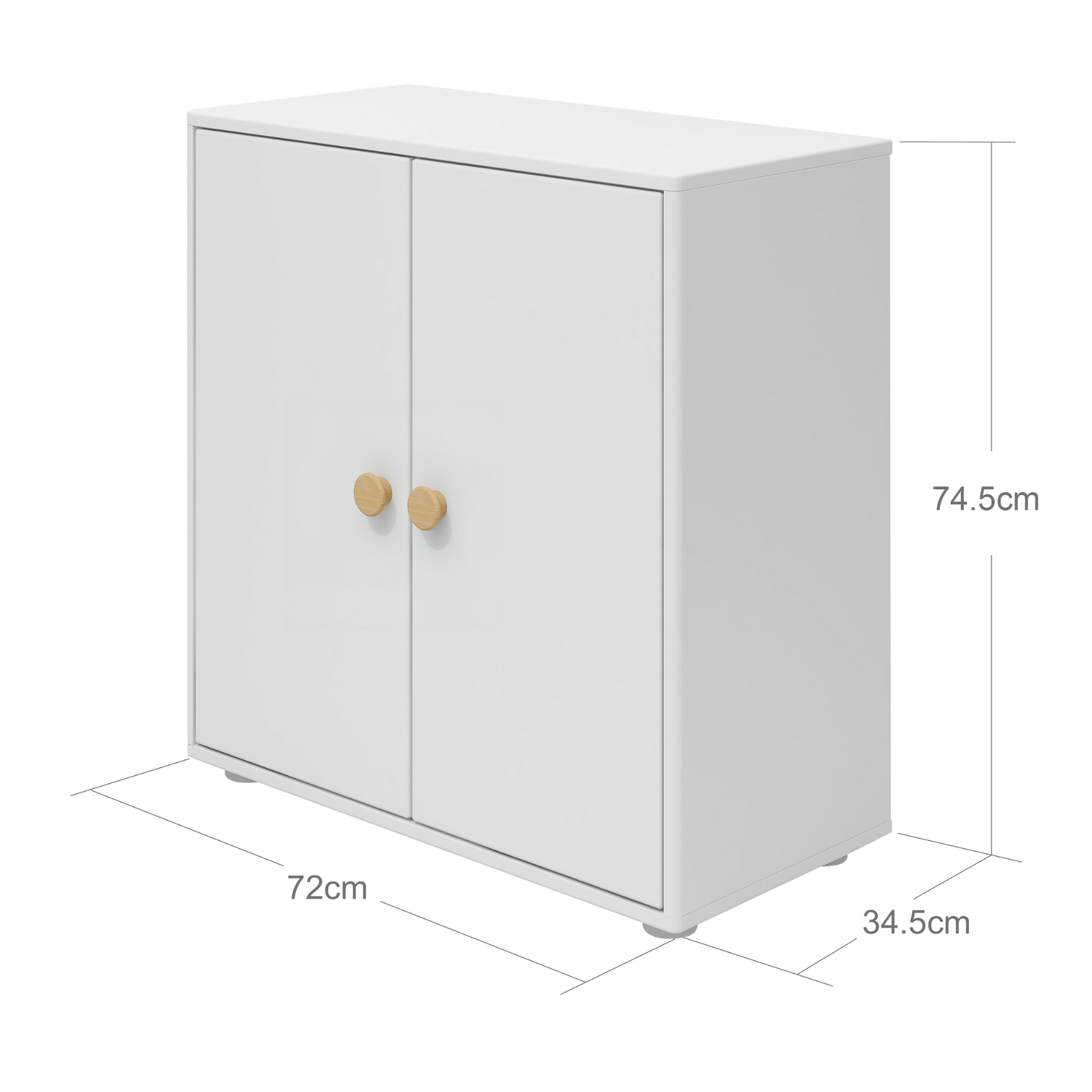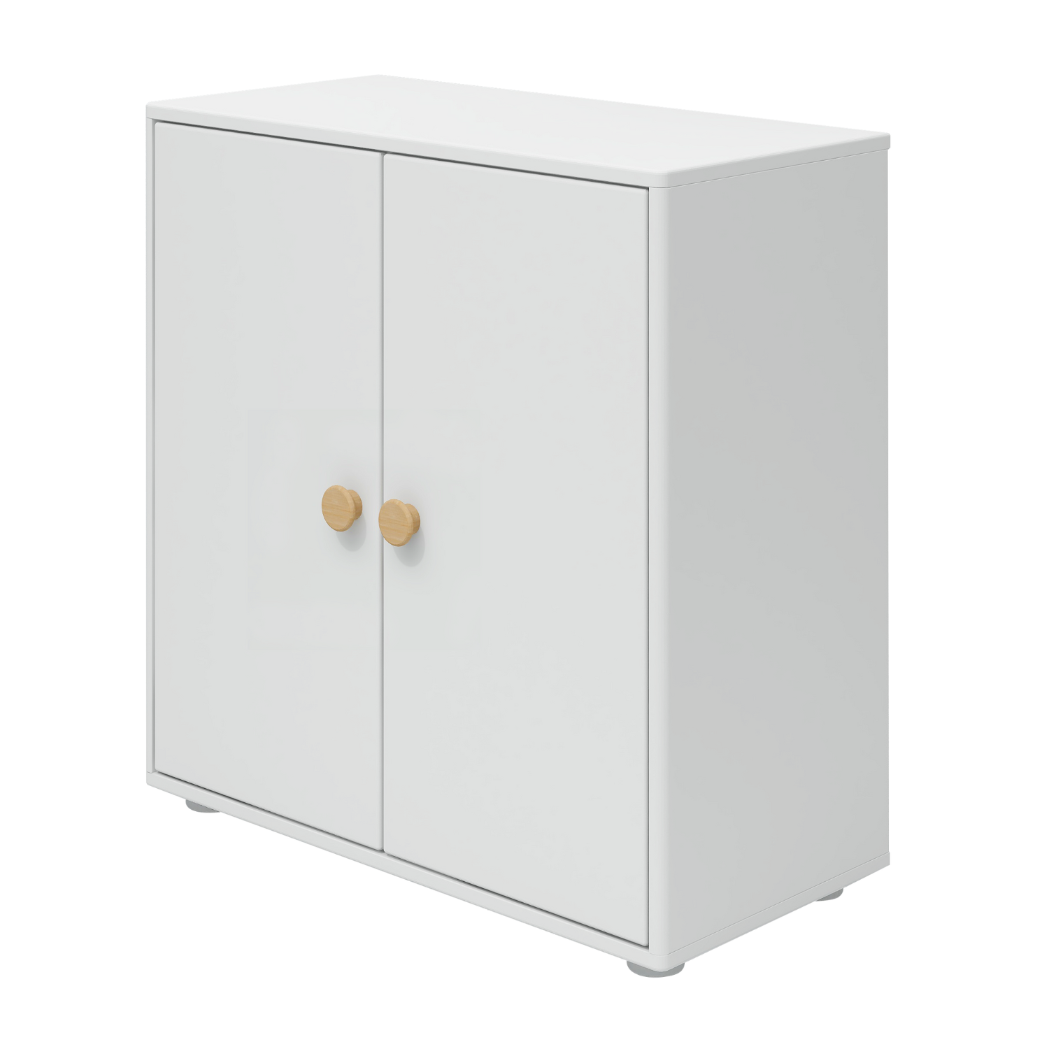 The freestanding Roomie mini bookcase has one adjustable shelf and two doors, and it's made of certified MDF and HDF. The bookcase is timeless, Scandinavian design with smooth edges for extra comfort and safety. It comes with rounded wooden knobs in several different colour options, and it's perfect for storing books, toys and games in your child's room. It fits under FLEXA mid-high beds, and it can easily be combined with other storage units. Check out the full Roomie collection to see all the storage possibilities. - Freestanding bookcase with one adjustable shelf and two doors - Full-coloured, smooth edges, and soft-close - Easy to match with other FLEXA collections - Made from FSC™ certified MDF and HDF - Designed in Denmark