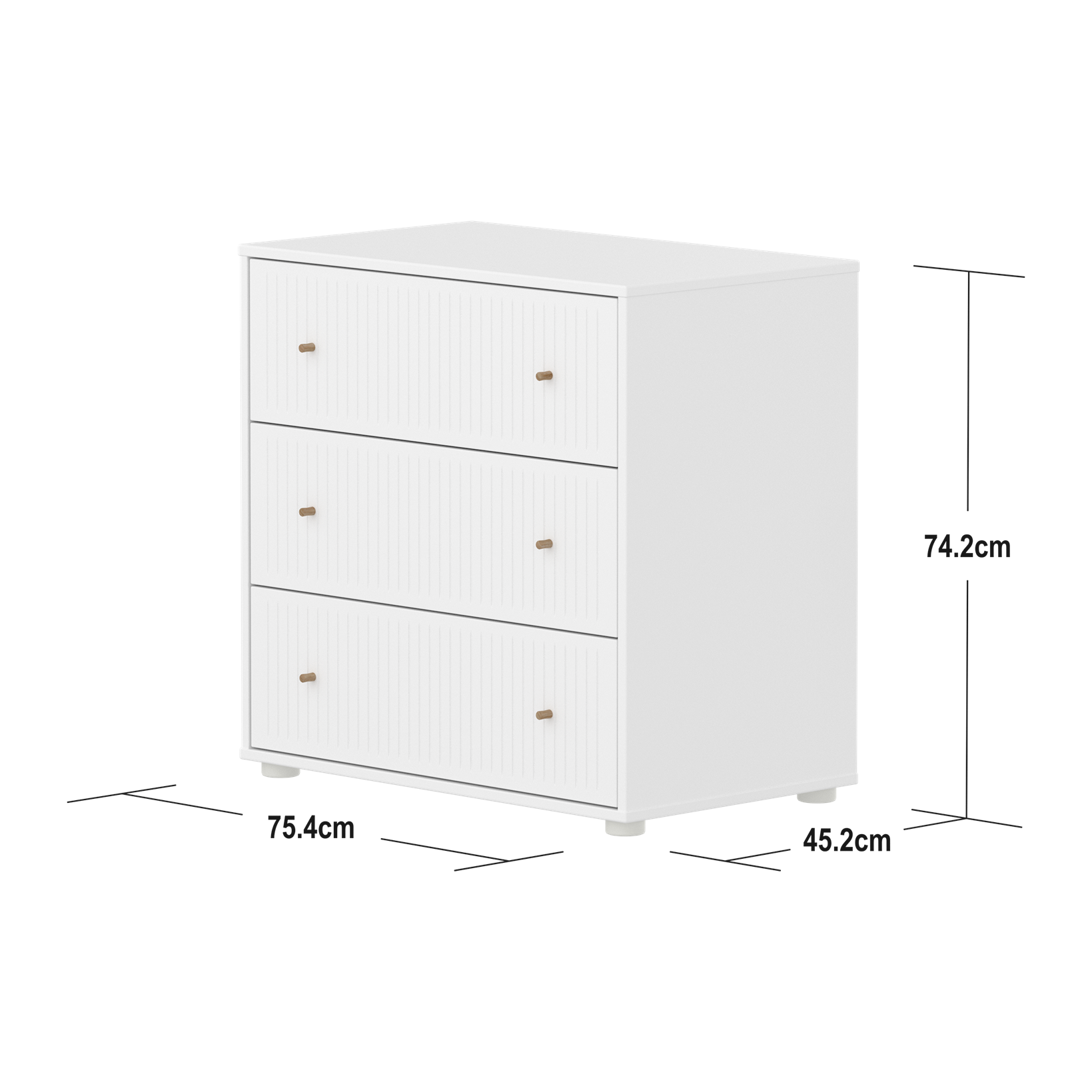 SAGA Chest, 3 drawer, White with Grooves