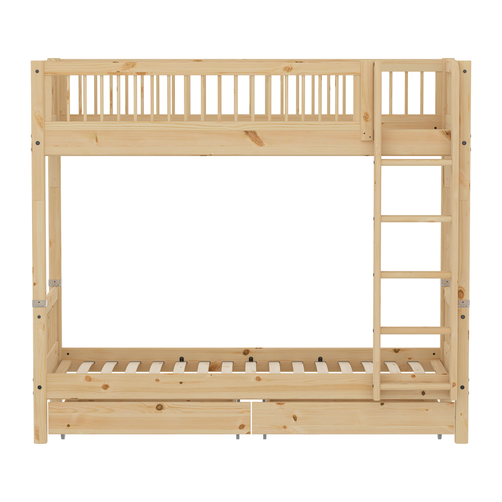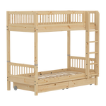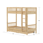 Our High bunk bed has a straight ladder with anti-slip steps and an integrated handle. It is crafted in FSC®-certified raw solid pinewood that ensures the safety, stability and durability of the bed.