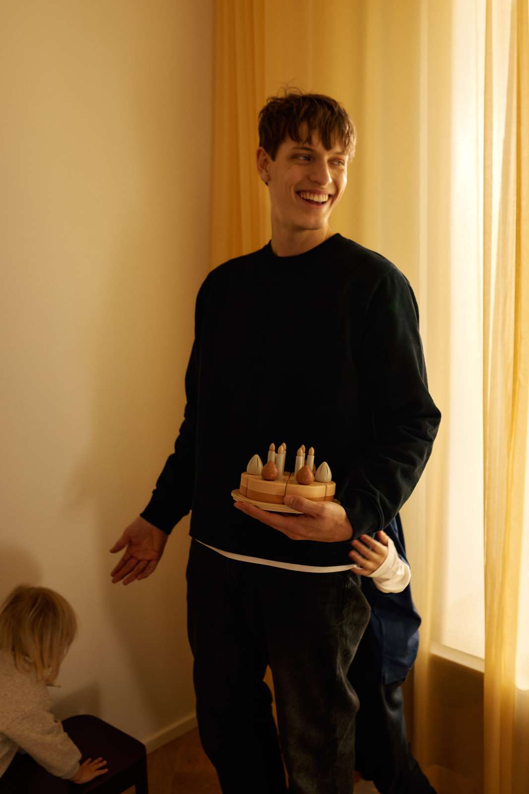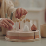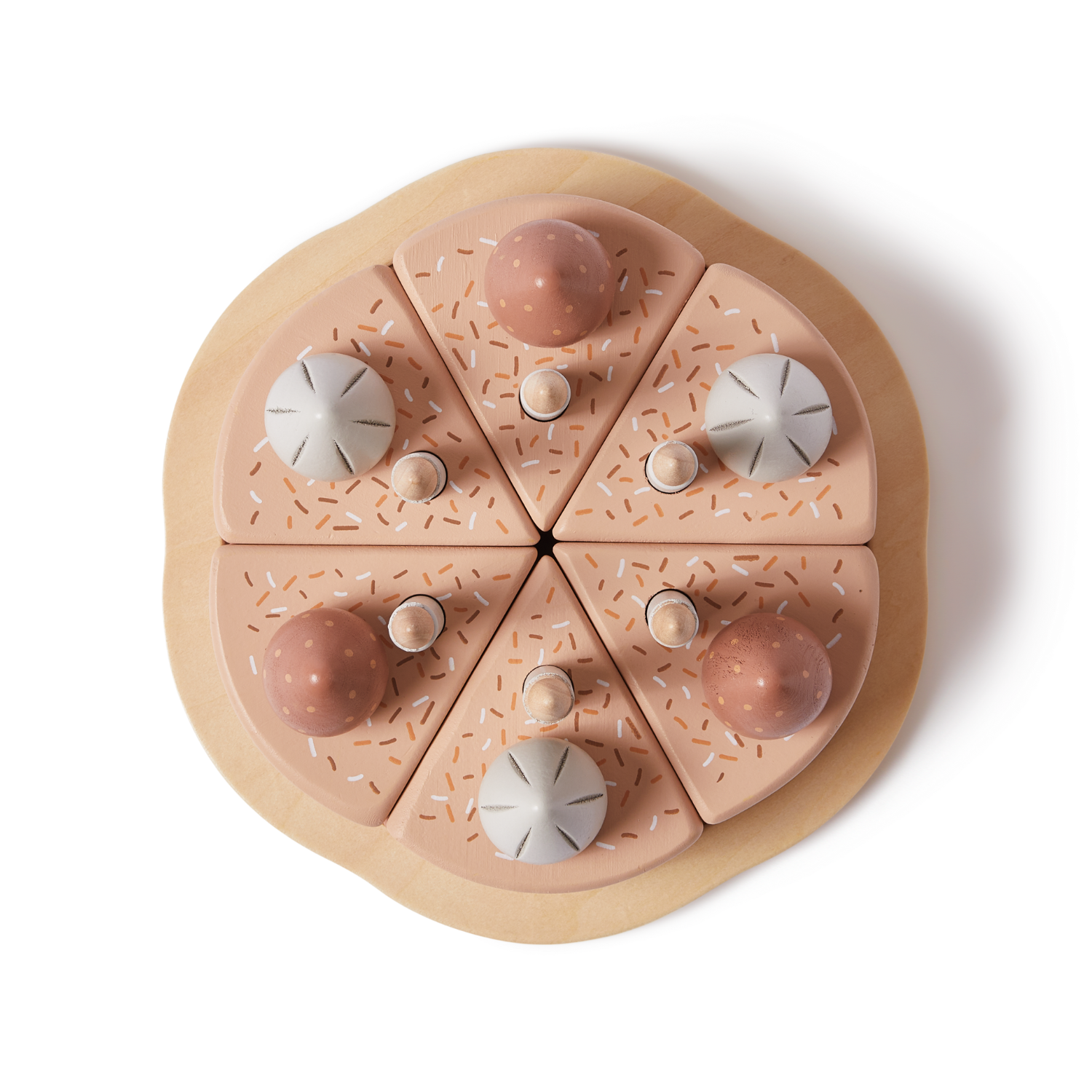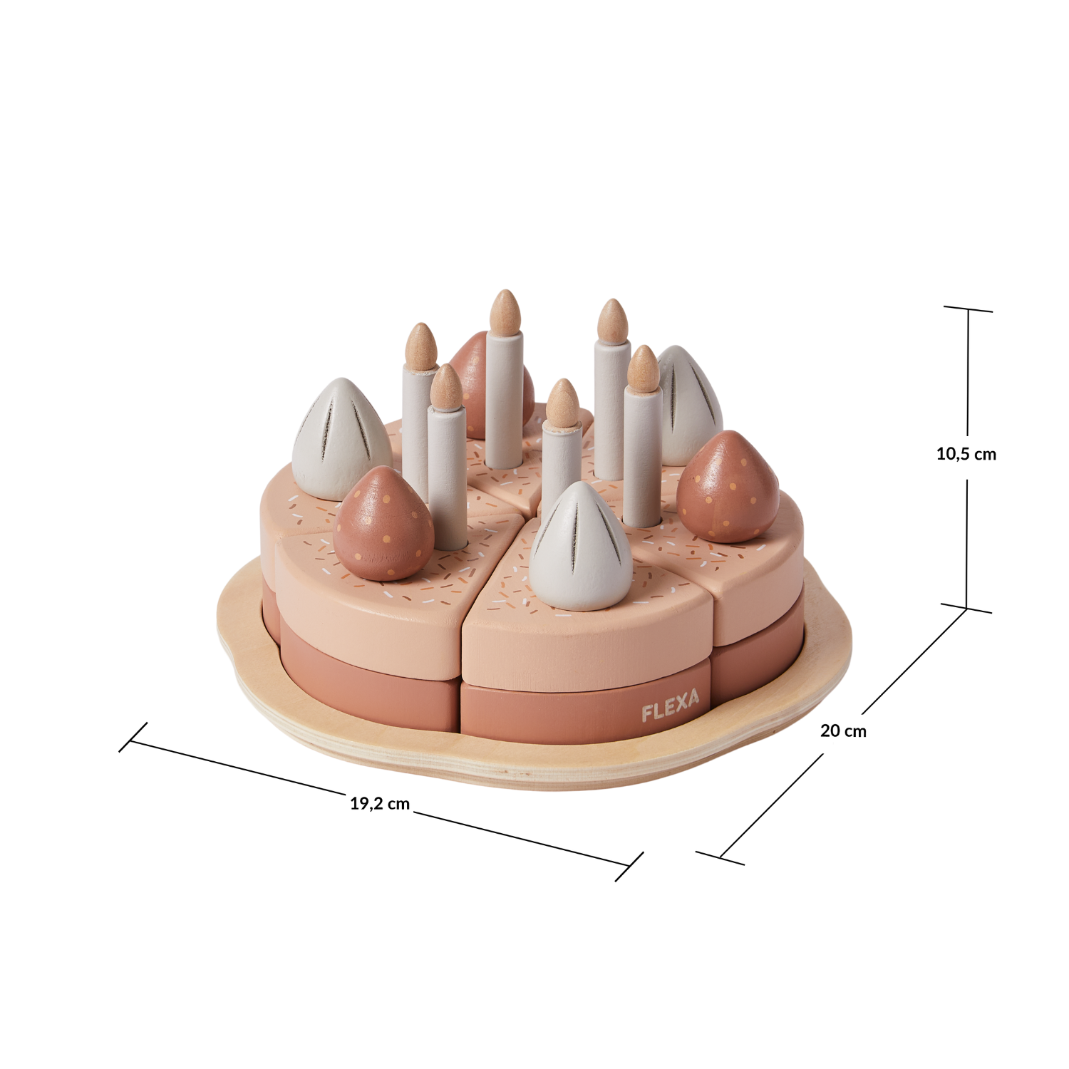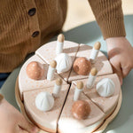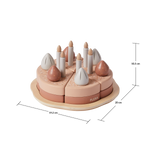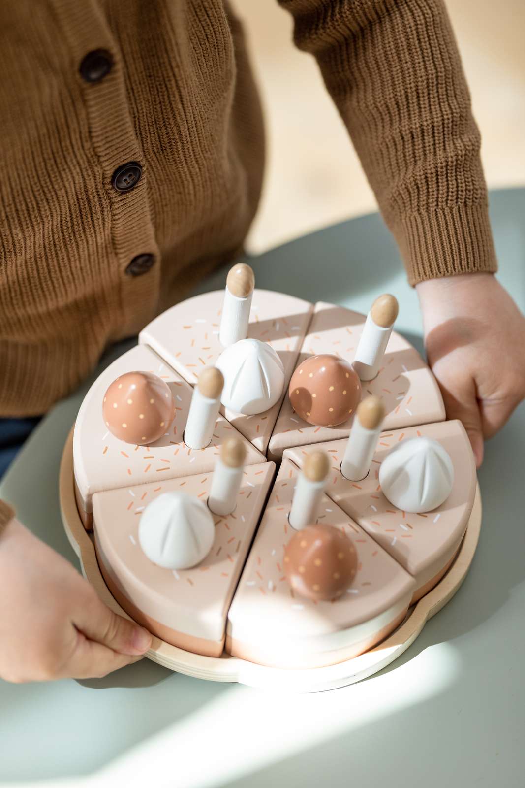 With this wooden Birthday Cake, your little one can engage in various kinds of role play. One day, your child might pretend to be a confectioner who perfectly masters the pincer grasp. The next day, your child dreams up a festive birthday party and starts rehearsing traditions such as birthday-singing, clapping hands, and gift-exchanging. The Birthday Cake includes six slices of cake with frosting, candles, meringue tops, and strawberries. This durable and timeless toy is made to last through years of celebrations. Just perfect for a birthday present too!